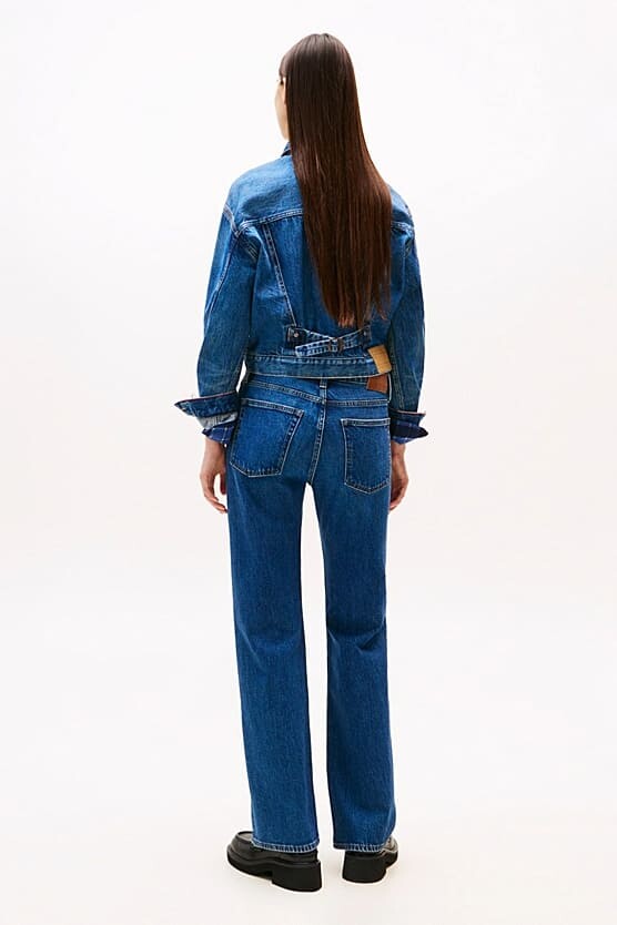 Her kombine uyum sağlayan bu jean pantolon, vücudu saran ve paçalara doğru genişleyen İspanyol paça kesimiyle son derece zarif bir silüet sunar. Orta bel tasarımı konforlu bir oturuş sağlarken, esneklik katılmış pamuklu denim kumaşı gün boyu rahat hareket etmenize olanak tanır. Dizler ve dikişlerdeki solma efektleri pantolona havalı ve yaşanmış bir karakter katıyor. Gardırobunuzun en kullanışlı parçalarından biri olacak bu jean'i, basic tişörtlerden şık bluzlara kadar her şeyle tamamlayabilirsiniz.