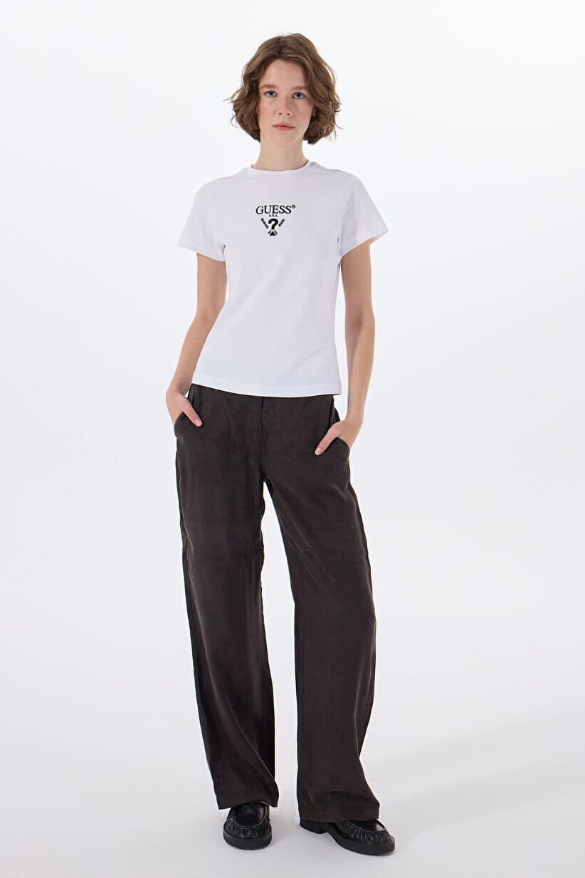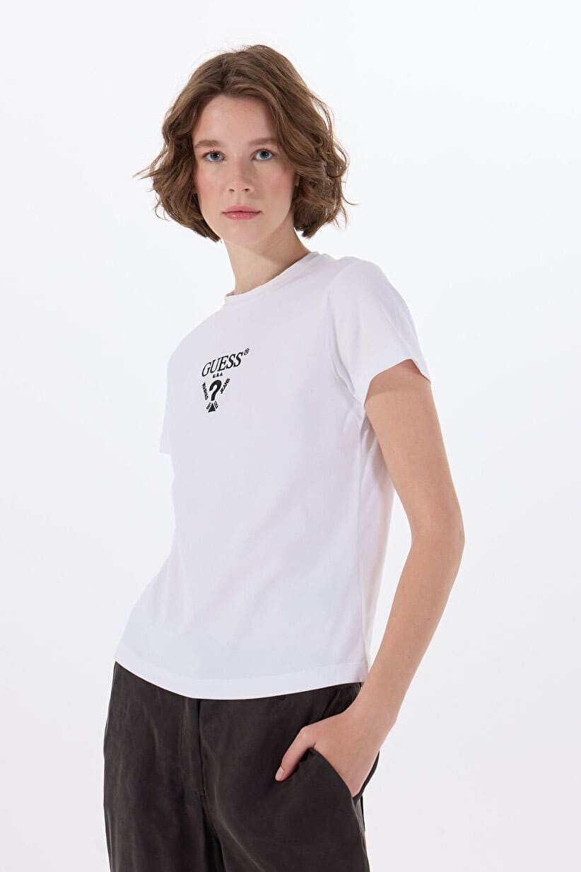 Kadın Colette Önü Logolu Stretch T-Shirt - Beyaz