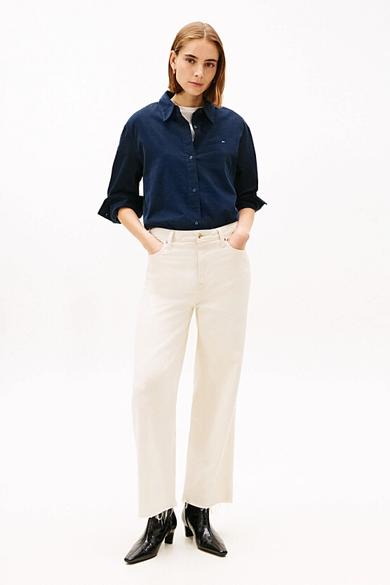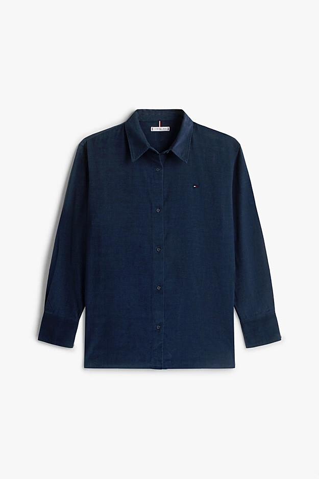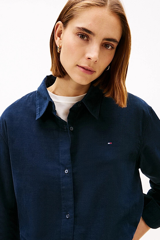Hem rahat hem de özenli bir stil yaratmak için tasarlanan bu gömlek, dokusal fitilli kadife (corduroy) yapısıyla öne çıkıyor. Pamuk ve liyosel karışımlı yumuşak kumaşı, gün boyu konfor sunarken, relaxed fit kesimi ve hafif düşük omuz detayları modern ve salaş bir silüet oluşturur. Klasik yarı açık yakası ve tek düğmeli manşetleriyle zamansız bir şıklık sunan tasarım, göğüs kısmındaki minimal nakışlı bayrak amblemiyle tamamlanır.