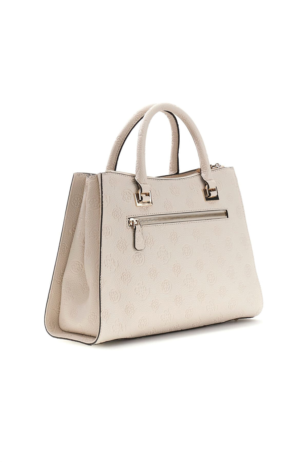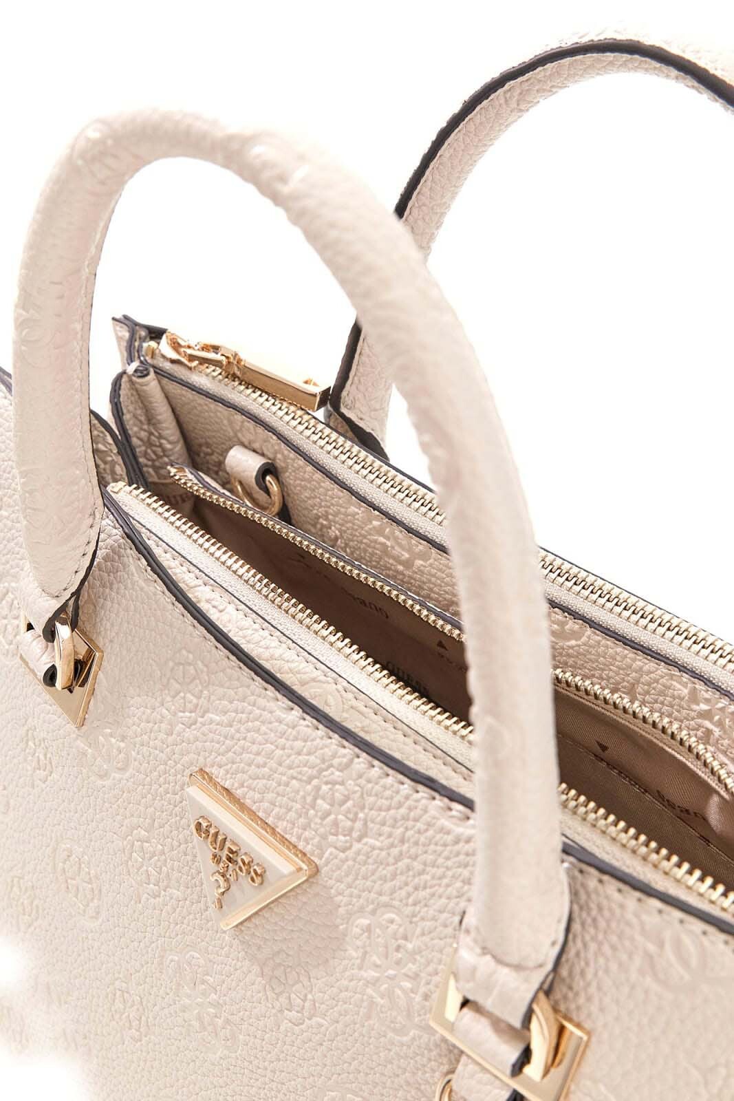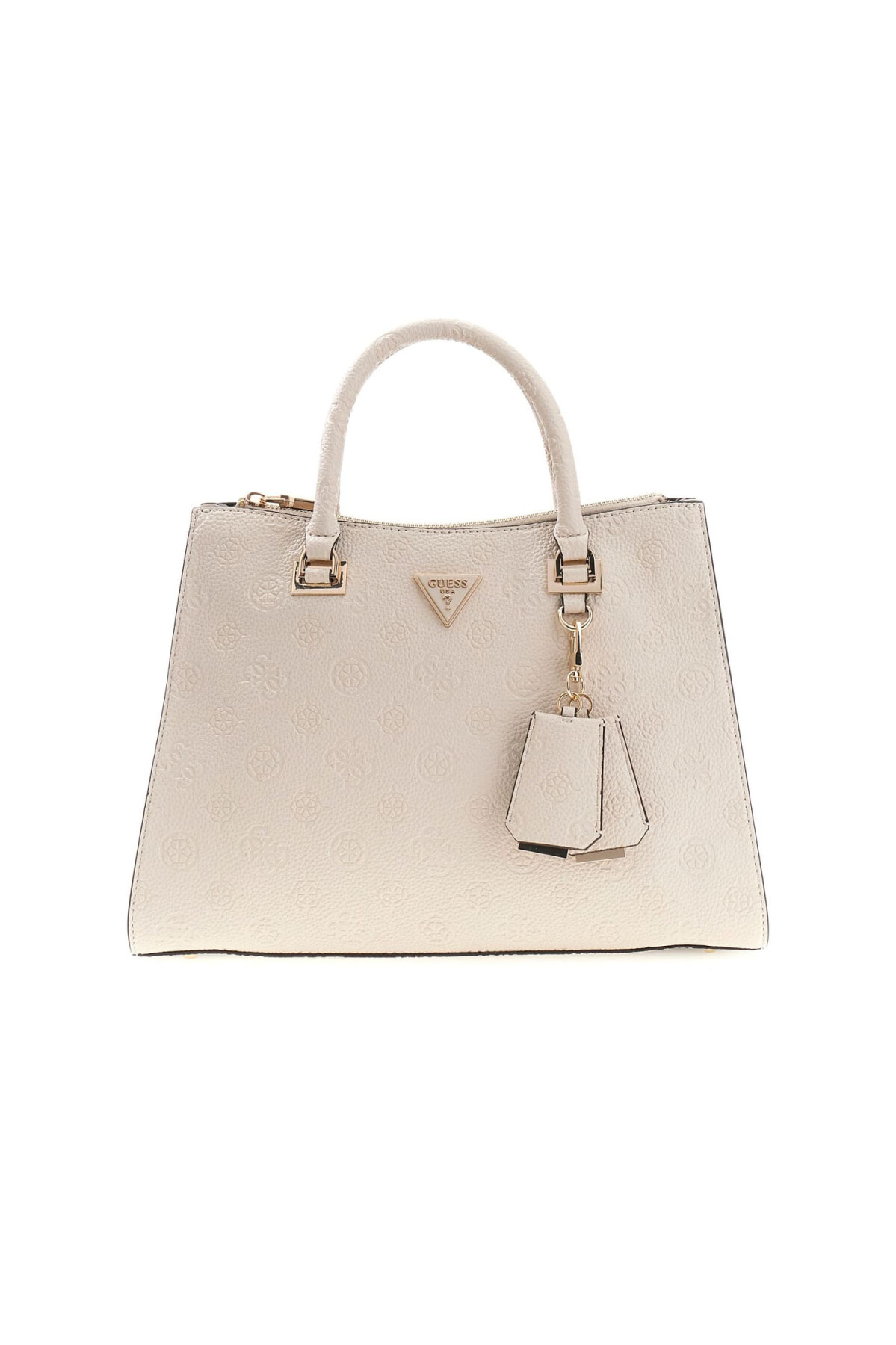 Kırık beyazın zarif ve aydınlık tonunu, yüzeyindeki ikonik logo kabartmalı desenlerle hareketlendiren Cresidia II el çantası, geniş hacimli satchel formuyla günlük şıklığınızı tamamlıyor. %100 poliüretan malzemeden üretilen 35 cm genişliğindeki bu model; ön yüzdeki altın rengi üçgen metal detay ve sap kısmında asılı duran çıkarılabilir şık etiket aksesuarı ile sofistike bir duruş sergiliyor. Çift el sapı sayesinde kolda veya elde konforla taşınabilen çanta, arka yüzeyindeki fermuarlı cep ile pratik bir saklama alanı sunuyor. İç tasarımı ise kullanım kolaylığı sağlamak adına özenle bölümlendirilmiş; ortadaki fermuarlı geniş bölme çantayı iki ana kısıma ayırarak eşyalarınızı kategorize etmenizi kolaylaştırırken, yanlardaki fermuarlı cepler düzeni korumanıza yardımcı oluyor.