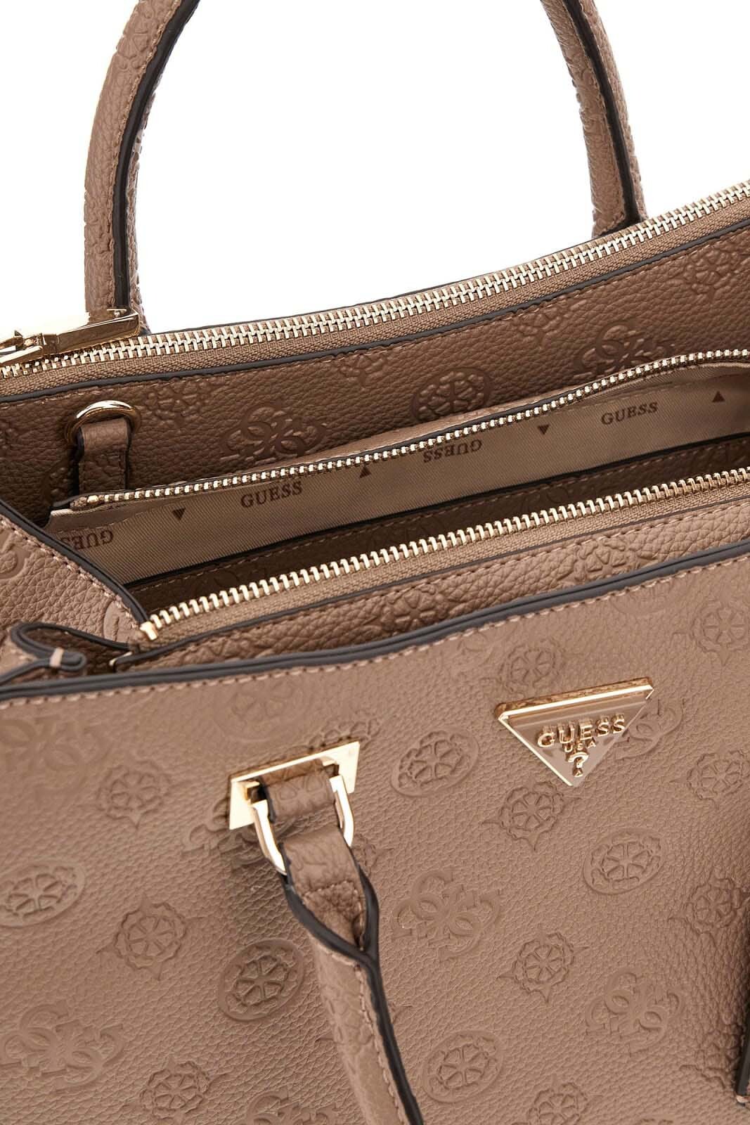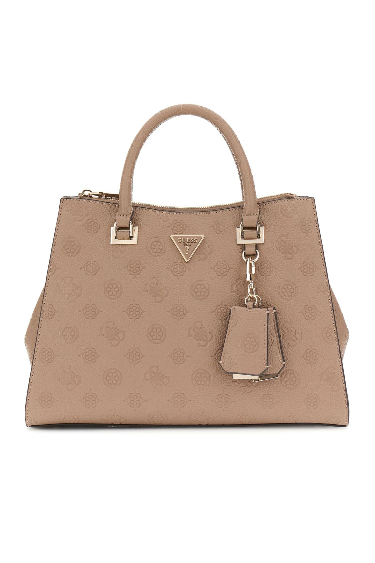 Koyu meşe renginin sıcak ve doğal tonunu, tüm yüzeyi kaplayan kabartmalı logo deseniyle buluşturan Cresidia II el çantası, klasik şıklığı dokusal zenginlikle sunuyor. %100 poliüretan malzemeden üretilen ve 35 cm genişliğe sahip bu geniş yapılı model; ön yüzdeki altın rengi üçgen metal logo ve sap kısmında asılı duran geometrik kılıflı şık aksesuar ile zengin bir duruş sergiliyor. Yuvarlatılmış sağlam el sapları ile elde veya kolda konforla taşınabilen çanta, üstten fermuarlı ana bölmesiyle eşyalarınızı güvende tutuyor. Arka yüzeyde bulunan fermuarlı cep, günlük hayatta hızlı erişmek istediğiniz eşyalar için pratik bir alan yaratırken; iç kısımdaki logolu astar ve fermuarlı cep, düzenli bir kullanım imkanı sağlıyor.
