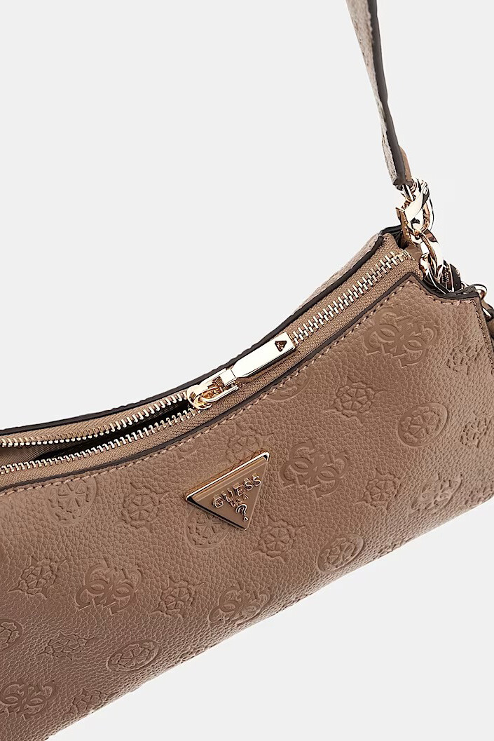 Koyu Kahve renginin sıcak ve sofistike tonunu, yüzeyindeki ikonik logo kabartmalı desenlerle buluşturan Cresidia II omuz çantası, zamansız şıklığı modern bir formda sunuyor. %100 poliüretan malzemeden üretilen, 27 cm genişliğindeki bu model; hafif kavisli silüeti ve ön yüzdeki altın rengi üçgen metal detay ile zenginleştirilerek tasarıma lüks bir hava katıyor. Yaklaşık 45 cm uzunluğundaki ayarlanabilir ve çıkarılabilir omuz askısı, çantayı kol altında veya omuzda ideal yükseklikte taşımanızı sağlarken; askı üzerinde yer alan çıkarılabilir mini cüzdan aksesuarı hem işlevsel hem de estetik bir detay olarak öne çıkıyor. Üstten fermuarlı ana bölmesi, logolu astarı ve fermuarlı iç cebi ile eşyalarınızı düzenli tutarken; arka yüzeydeki fermuarlı ekstra cep pratik bir kullanım alanı sağlıyor.