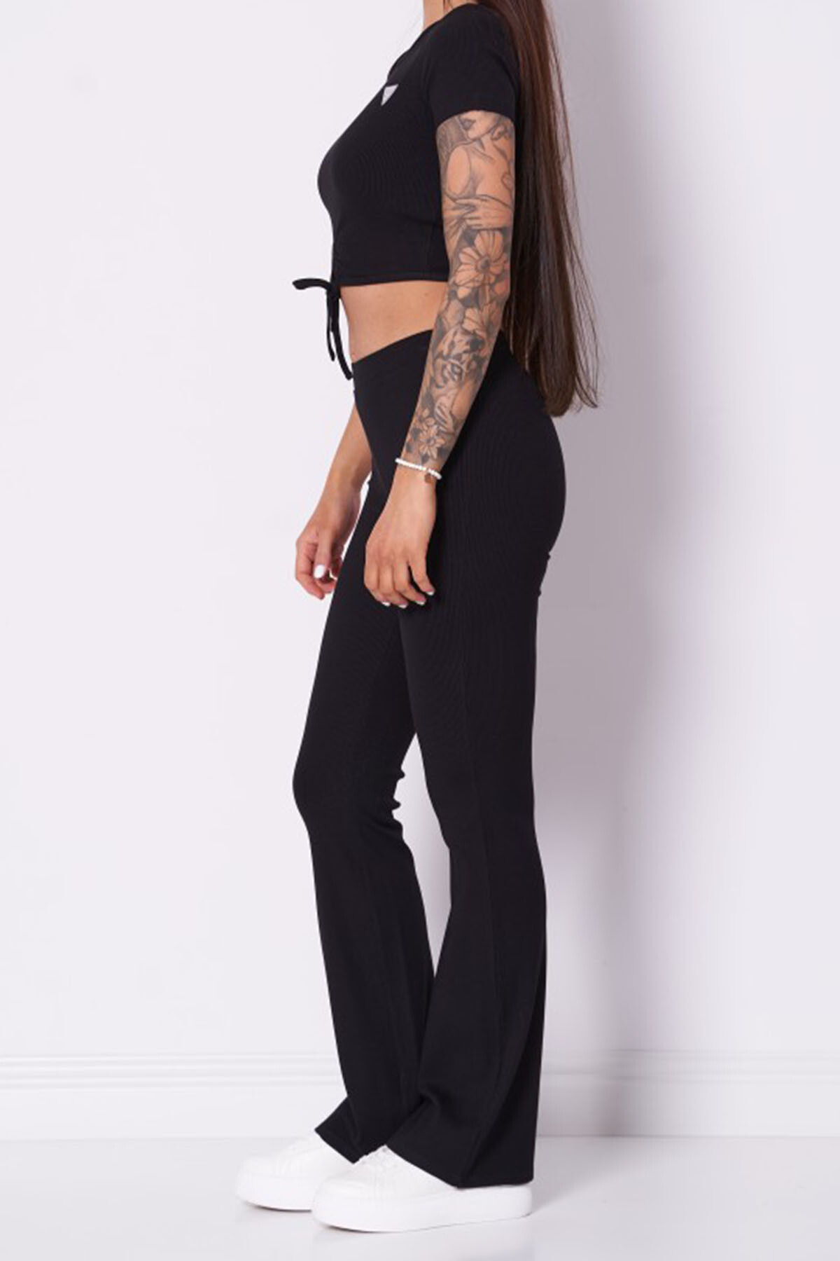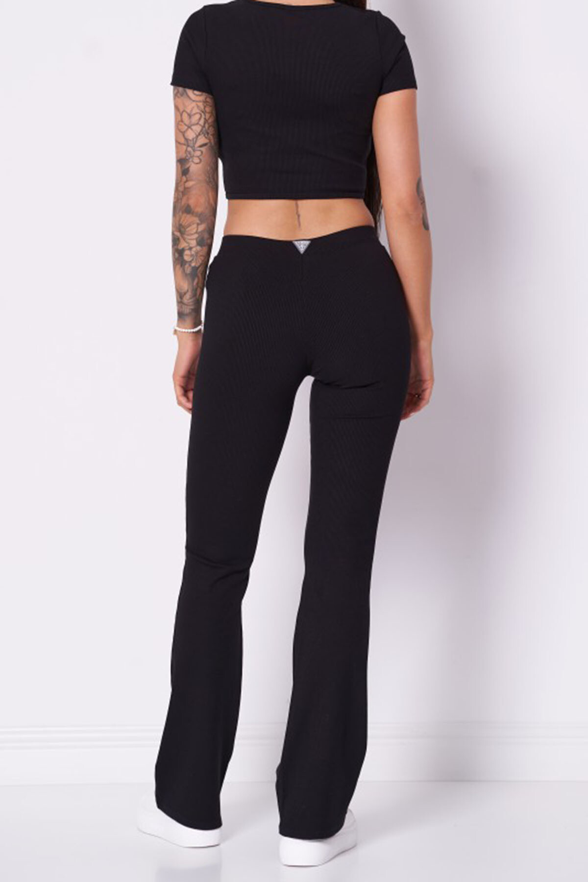 Kadın Crocus Rib Mini Flar Tayt - Siyah