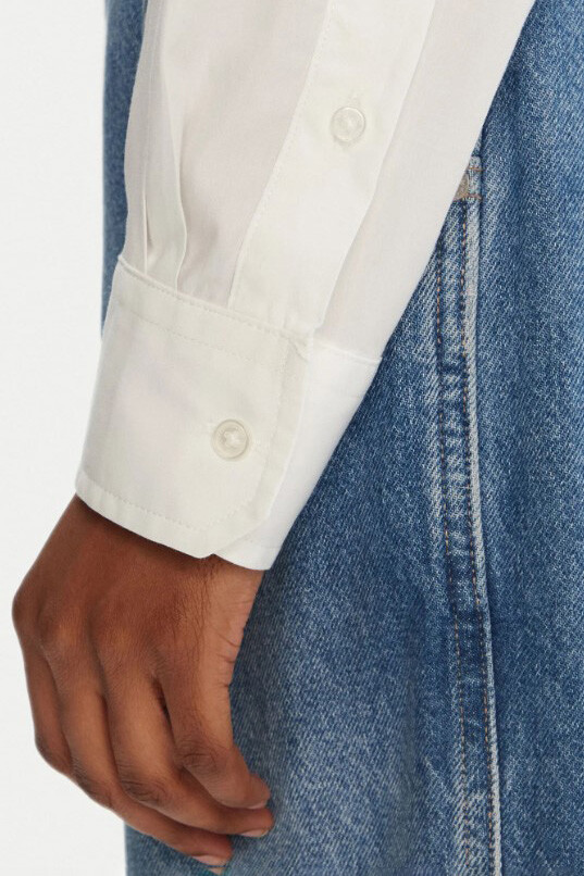 Klasik gömlek stili, trend sahibi ve modern bir kesimle yeniden yorumlanıyor. Yüksek belli pantolonlar ve eteklerle mükemmel bir uyum yakalayan cropped (kısa) silüeti, gardırobunuza genç ve dinamik bir hava katacak. Nefes alabilen, %100 pamuklu poplin kumaşı, gün boyu konfor ve şık bir duruş sağlar. Düğmeli yakası ve göğsündeki zarif script logo işlemesi gibi zamansız detaylar, bu gömleği hem günlük hem de daha şık kombinler için vazgeçilmez kılar.