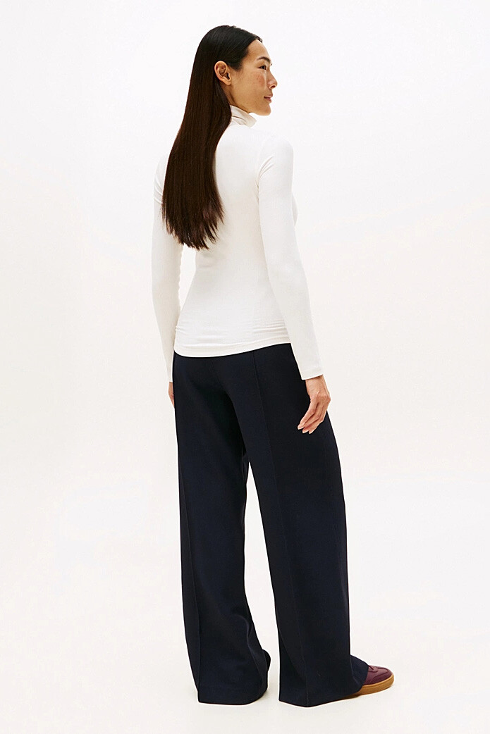 Gardıropların en temel ve en şık parçalarından biri olan bu balıkçı yaka bluz, zarafeti ve konforu bir araya getiriyor. Vücudu saran dar kesimi, ultra yumuşak ve esnek fitilli viskoz kumaşıyla birleşerek kusursuz bir silüet yaratır. Hem tek başına hem de ceket, hırka veya süveterlerin içinde katman olarak kullanmak için ideal olan bu çok yönlü parça, her kombine sofistike bir dokunuş katmak için tasarlanmıştır.
