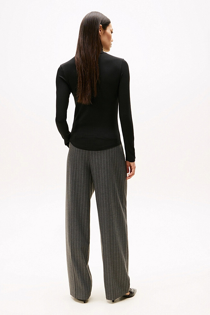 Gardıropların en temel ve en şık parçalarından biri olan bu balıkçı yaka kazak, zarafeti ve konforu bir araya getiriyor. Vücudu saran dar kesimi, ultra yumuşak ve esnek fitilli viskoz kumaşıyla birleşerek kusursuz bir silüet yaratır. Hem tek başına hem de ceket, hırka veya süveterlerin içinde katman olarak kullanmak için ideal olan bu çok yönlü parça, her kombine sofistike bir dokunuş katmak için tasarlanmıştır.
