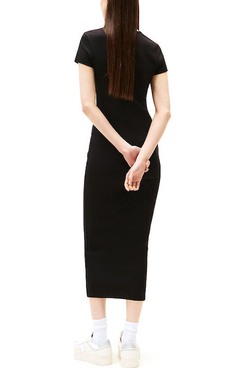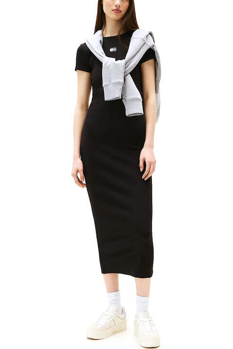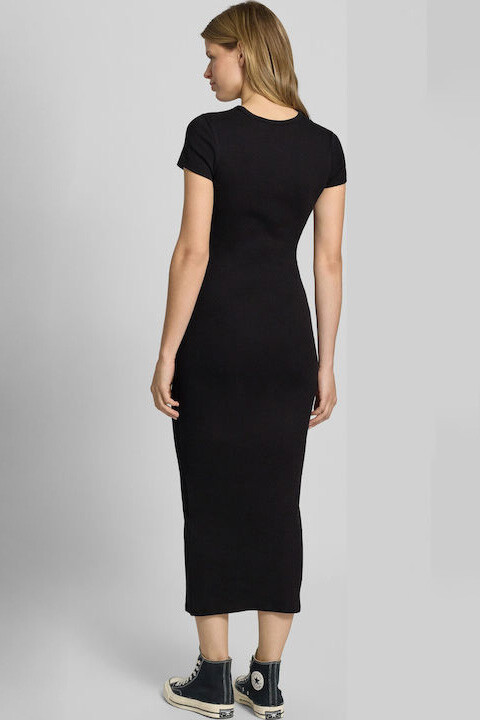 Modern ve minimalist bir şıklık sunan bu elbise, gardırobunuzun en çok yönlü parçalarından biri olmaya aday. Vücudu saran dar kesimi, esnek ve fitilli pamuklu kumaşıyla birleşerek hem feminen bir silüet yaratır hem de gün boyu konforlu bir kullanım sağlar. Klasik tişört stilindeki bisiklet yakası, kısa kolları ve trend sahibi midi boyu ile zahmetsiz bir zarafet sunar. Hem spor ayakkabılarla yaratacağınız gündelik kombinler hem de topuklu ayakkabılarla tamamlayacağınız şık akşam görünümleri için mükemmel bir temel oluşturur.