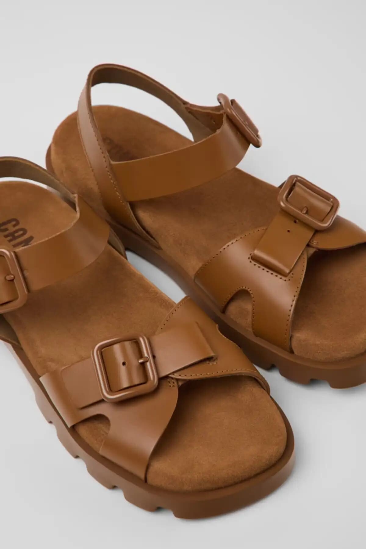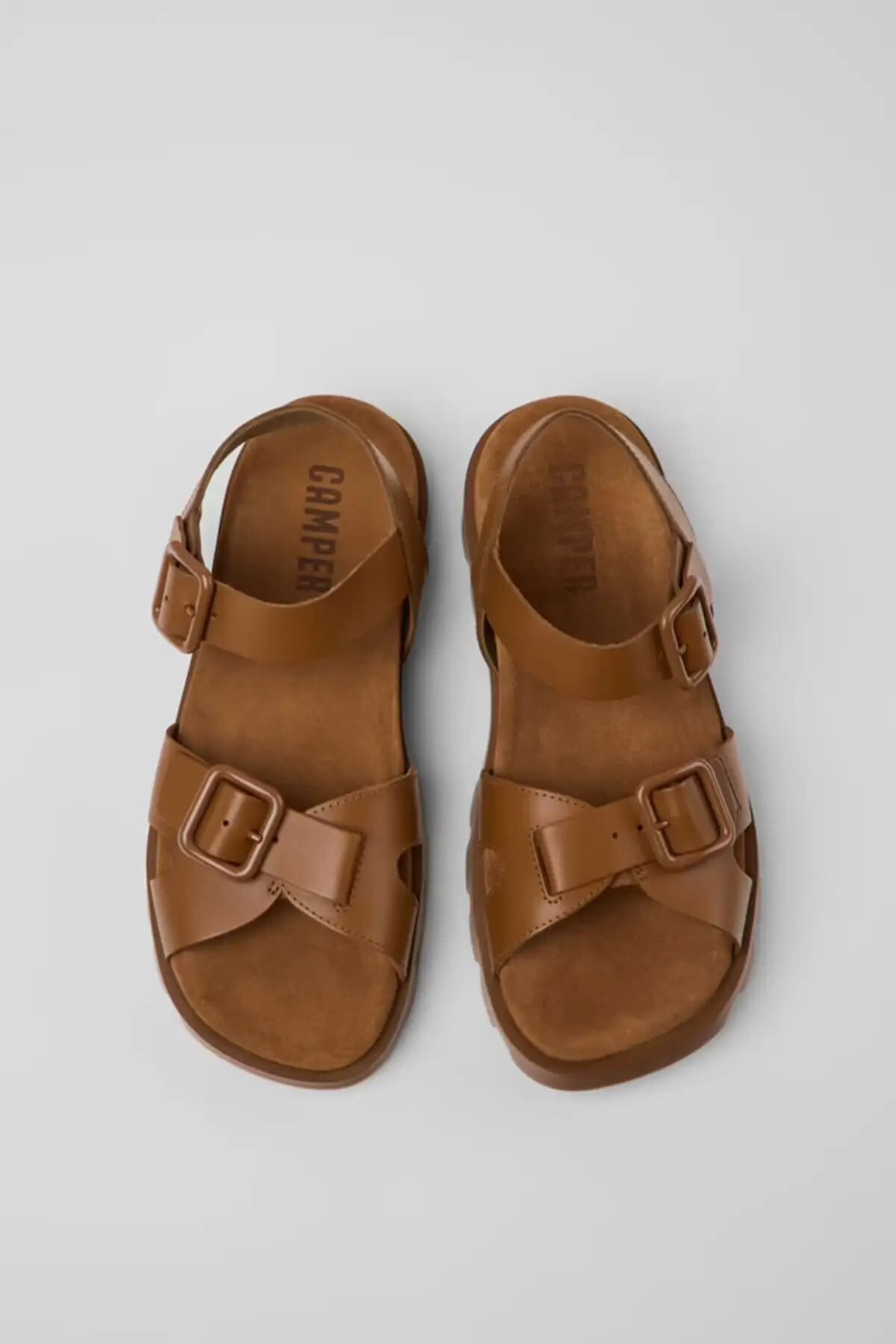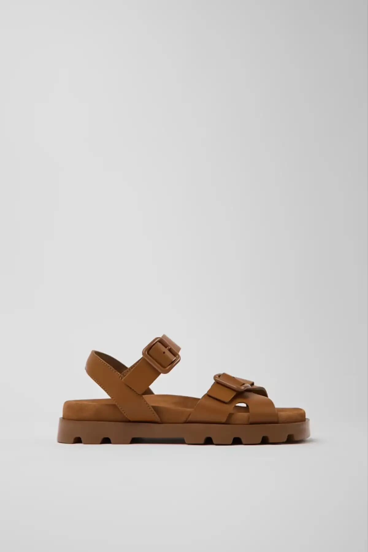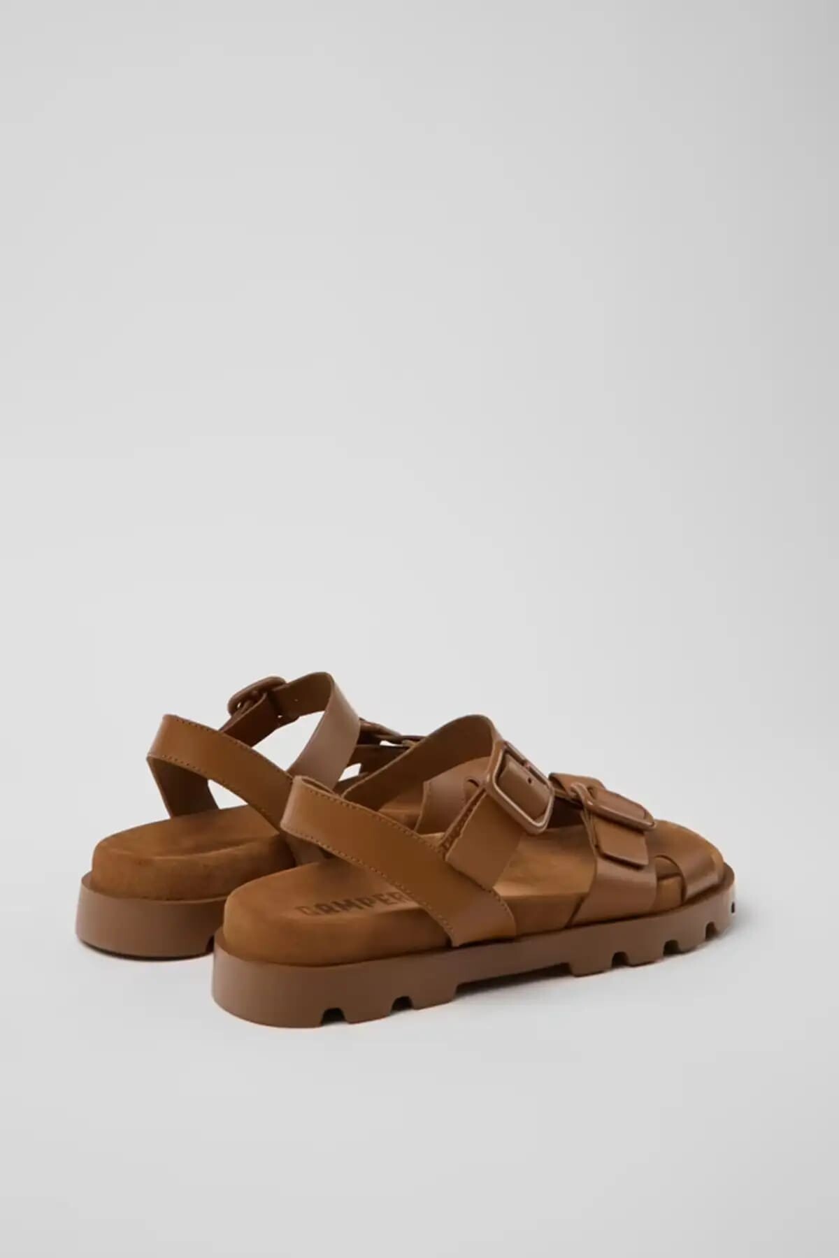 PU tabanlı ve XL EXTRALIGHT® EVA dış tabanlı kahverengi kadın sandaletleri. 1986'dan beri ikonik bir kentsel tasarıma sahip orijinal bir Camper. Brutus, 360° dikiş sayesinde dayanıklıdır ve hafif teknolojiye sahiptir.