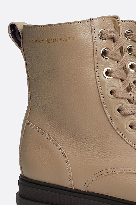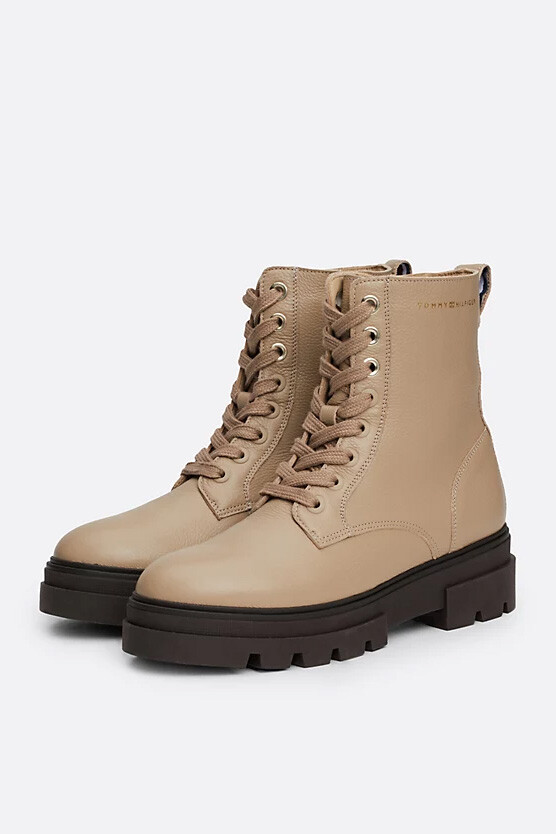 Kadın Deri Kelepçe Bağcıklı Bot - Bej