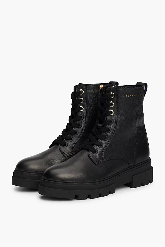Kadın Deri Kelepçe Bağcıklı Bot - Siyah