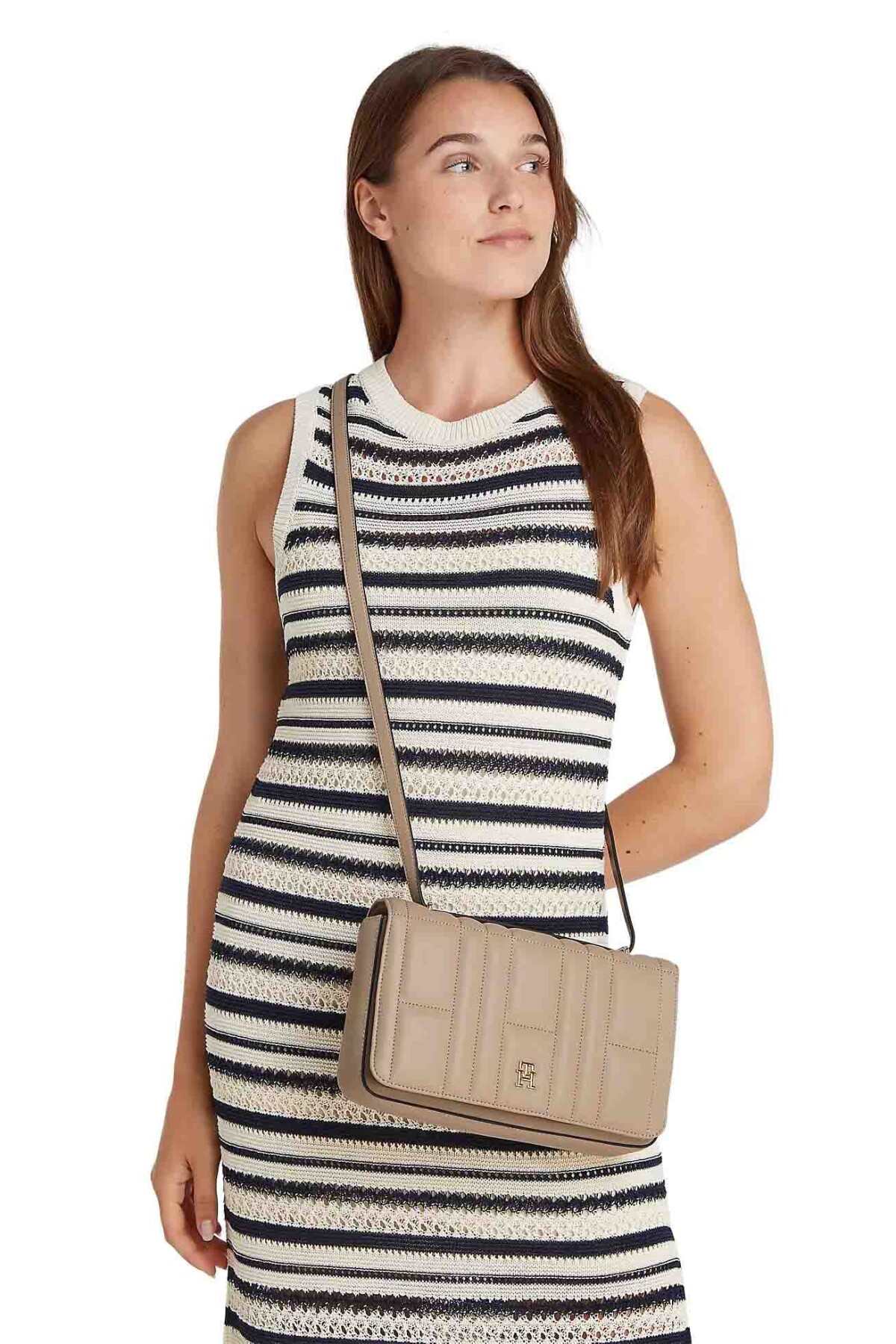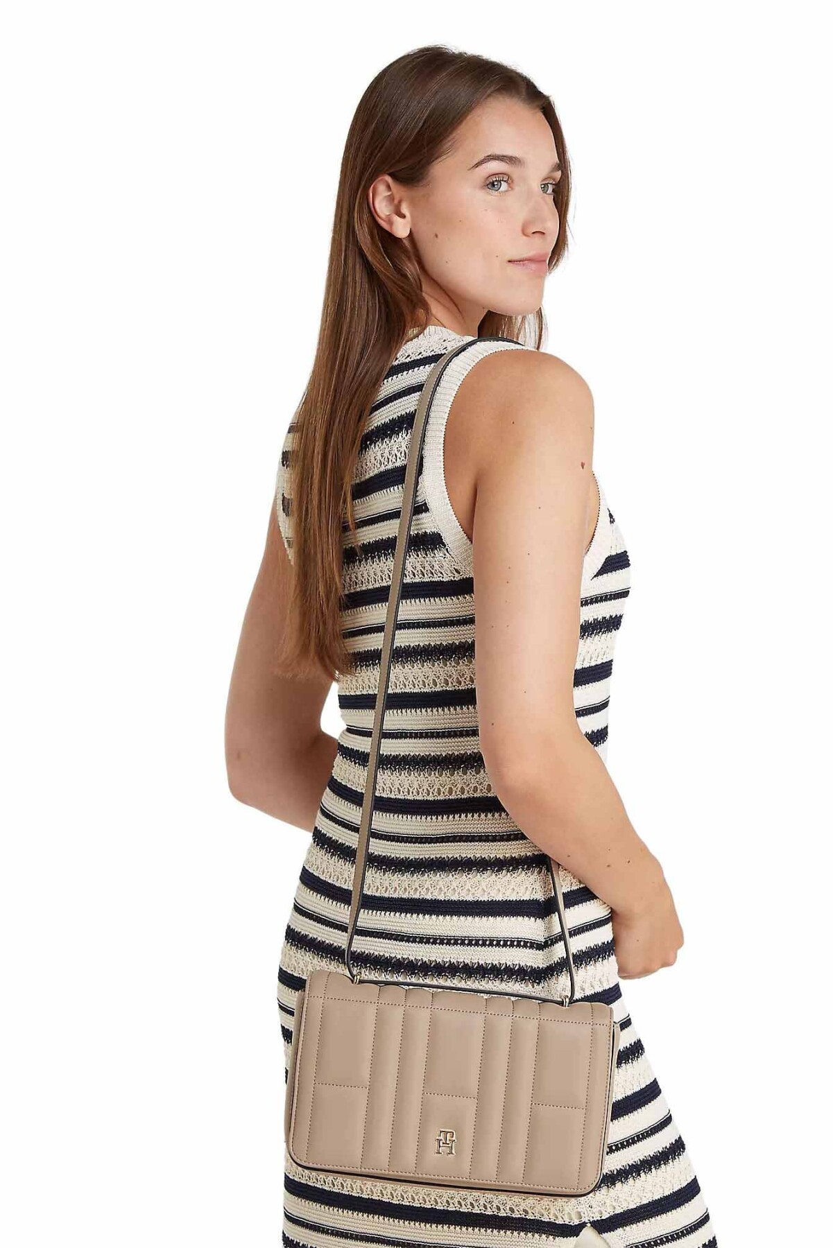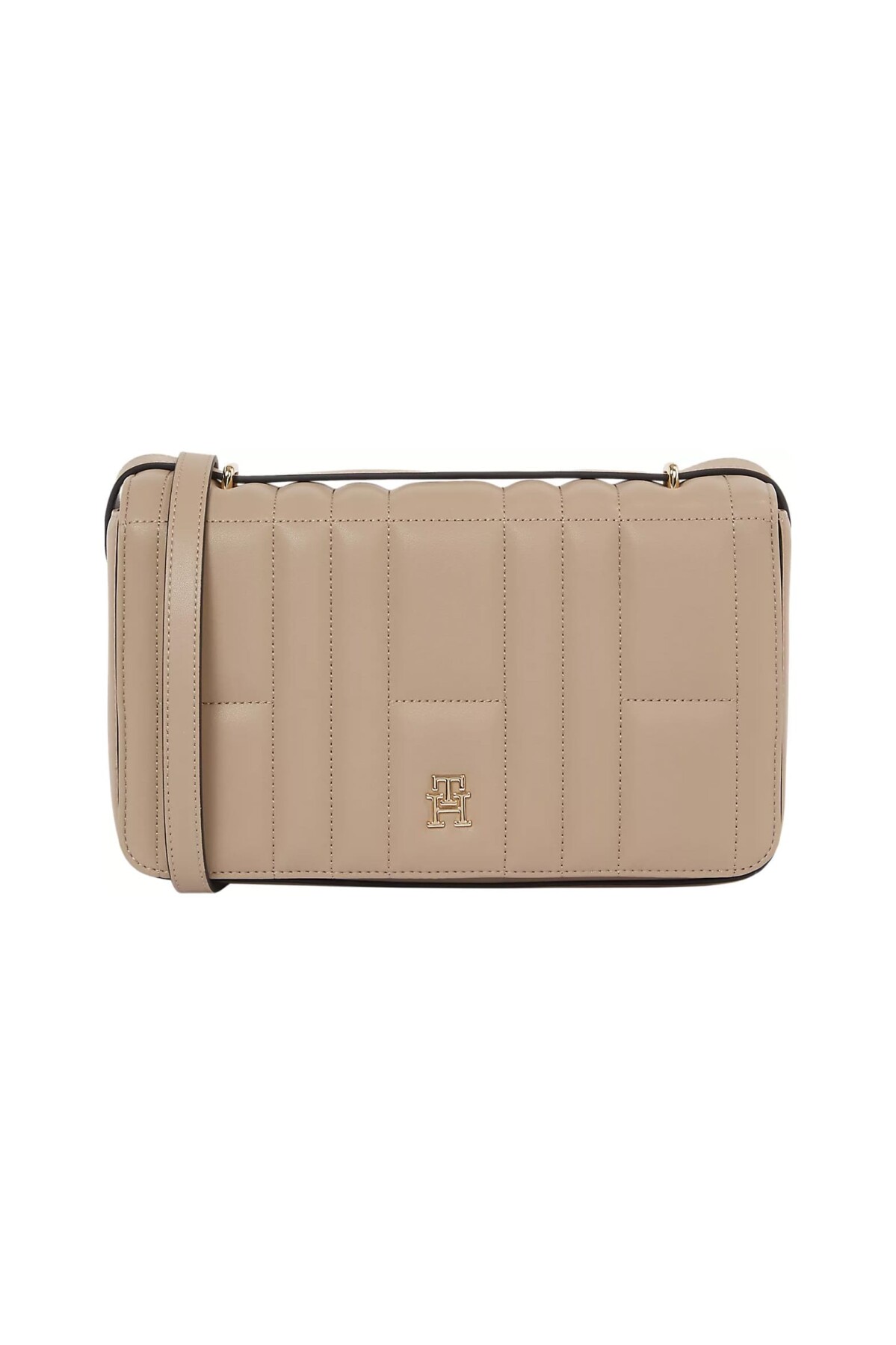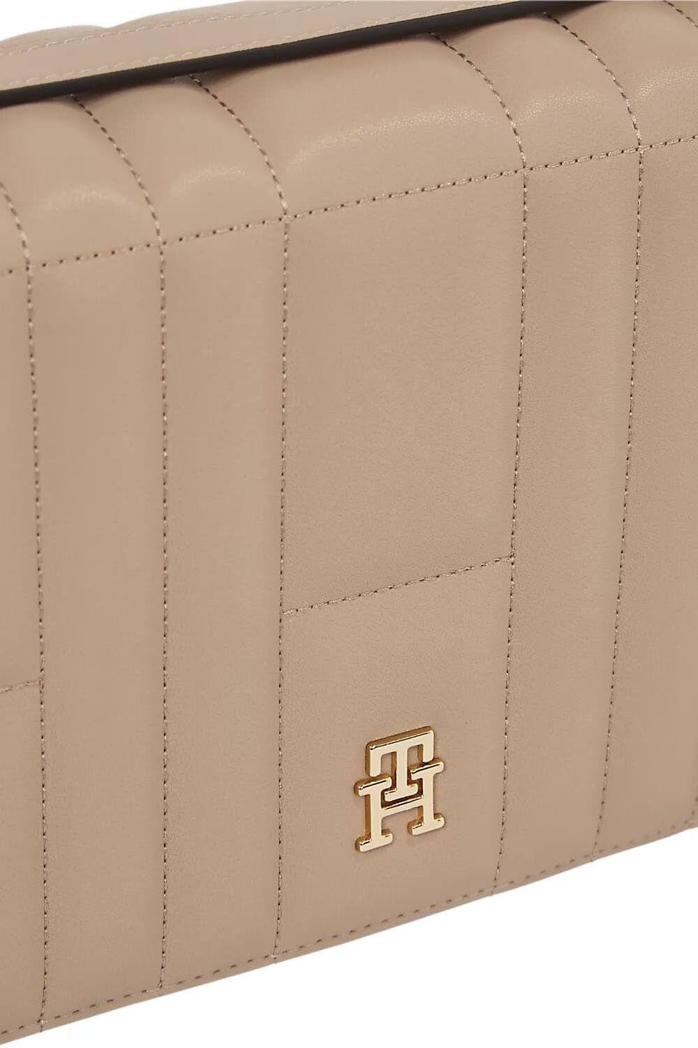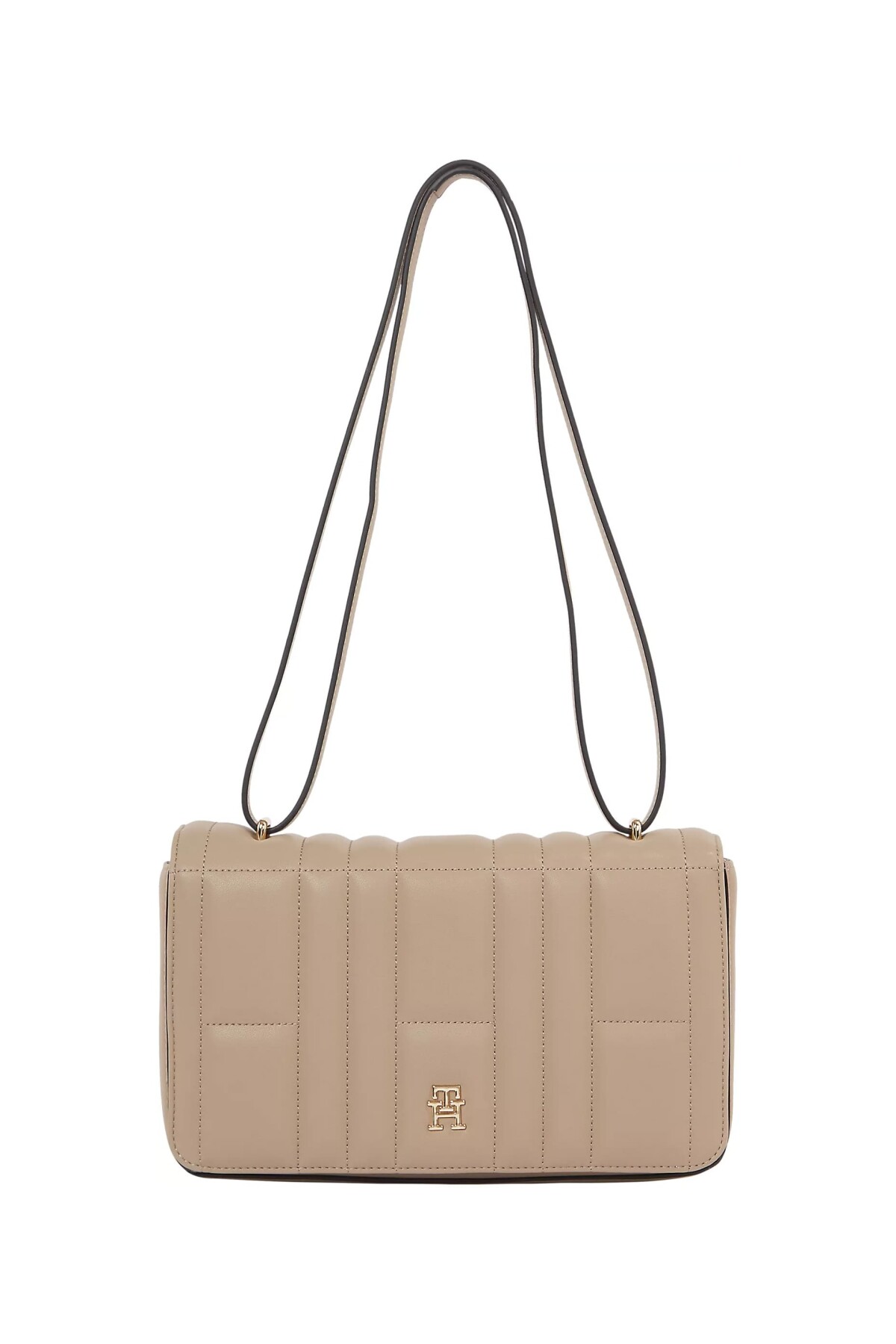 Zarif ve sade görünümüyle günlük ve özel gün kombinlerine kolayca uyum sağlayan bu kapitone omuz çantası, altın renkli TH logosu ve şık tasarımıyla stilinizi tamamlar.