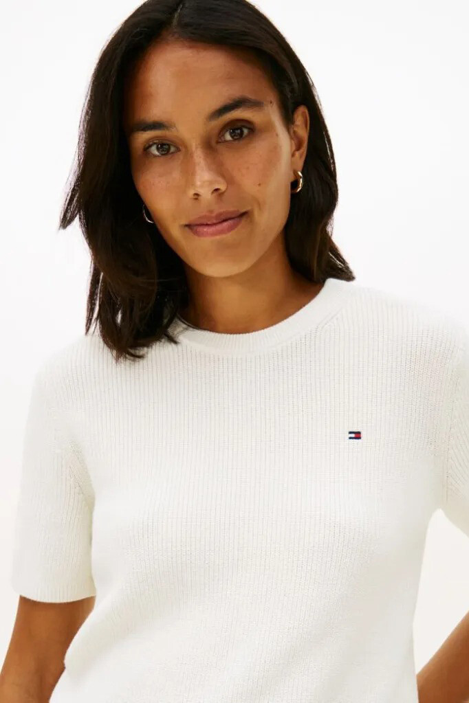 Pamuklu doğal ipliklerden üretilen bu triko, cildinize nefes aldıran yumuşak dokusuyla mevsim geçişlerinde ve sıcak günlerde ferah bir konfor sunar. Özel dokuma tekniğiyle kazandırılan kendinden desenli yüzeyi, klasik tişört rahatlığını triko şıklığına taşıyarak kombininize derinlik katar. Yuvarlak yaka kesimi ve vücudu nazikçe saran yapısı, hem tek başına hem de ceket içlerinde katmanlı giyim için ideal bir temel parça oluşturur. Bel hizasında biten modern boyu, özellikle yüksek belli jean ve pantolonlarla birleştiğinde bacak boyunu vurgulayan dengeli bir silüet yaratır. Göğüs üzerindeki minimal nakış detay, bu sade tasarıma zarif bir imza atar.