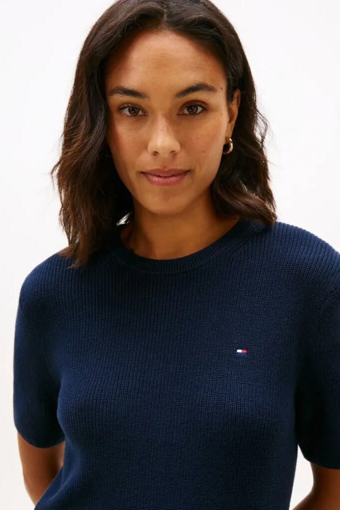 Pamuklu doğal ipliklerden üretilen bu triko, cildinize nefes aldıran yumuşak dokusuyla mevsim geçişlerinde ve sıcak günlerde ferah bir konfor sunar. Özel dokuma tekniğiyle kazandırılan kendinden desenli yüzeyi, klasik tişört rahatlığını triko şıklığına taşıyarak kombininize derinlik katar. Yuvarlak yaka kesimi ve vücudu nazikçe saran yapısı, hem tek başına hem de ceket içlerinde katmanlı giyim için ideal bir temel parça oluşturur. Bel hizasında biten modern boyu, özellikle yüksek belli jean ve pantolonlarla birleştiğinde bacak boyunu vurgulayan dengeli bir silüet yaratır. Göğüs üzerindeki minimal nakış detay, bu asil renkli tasarıma zarif bir imza atar.