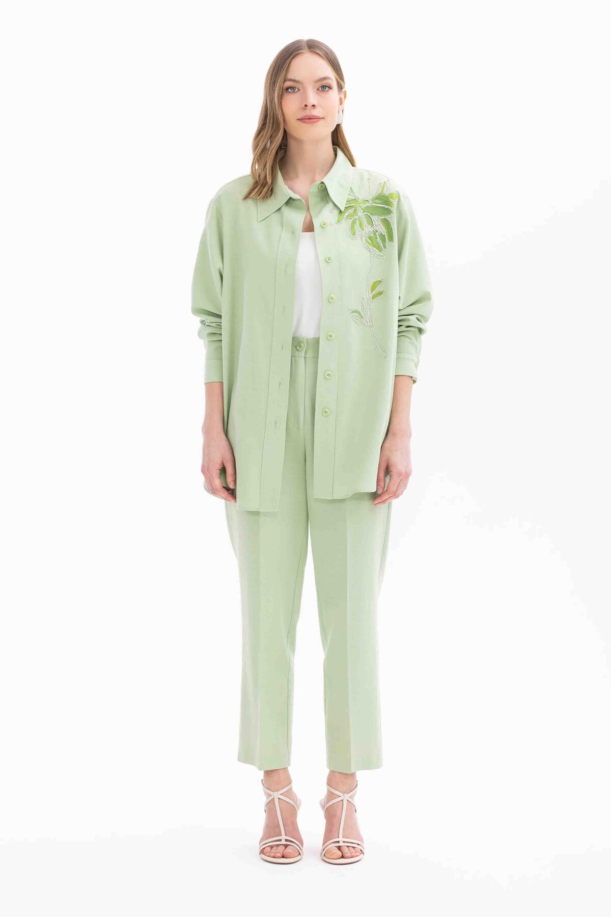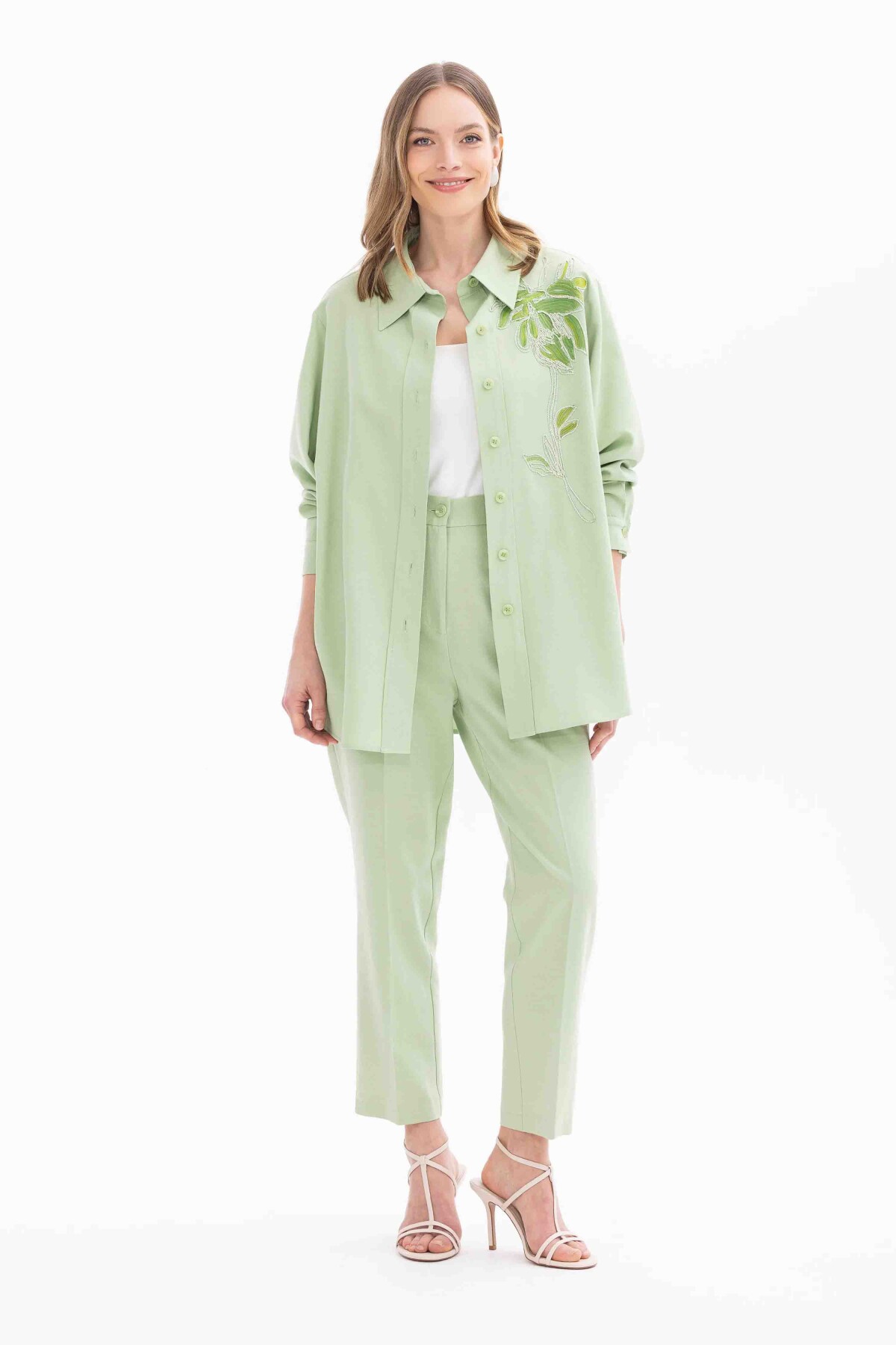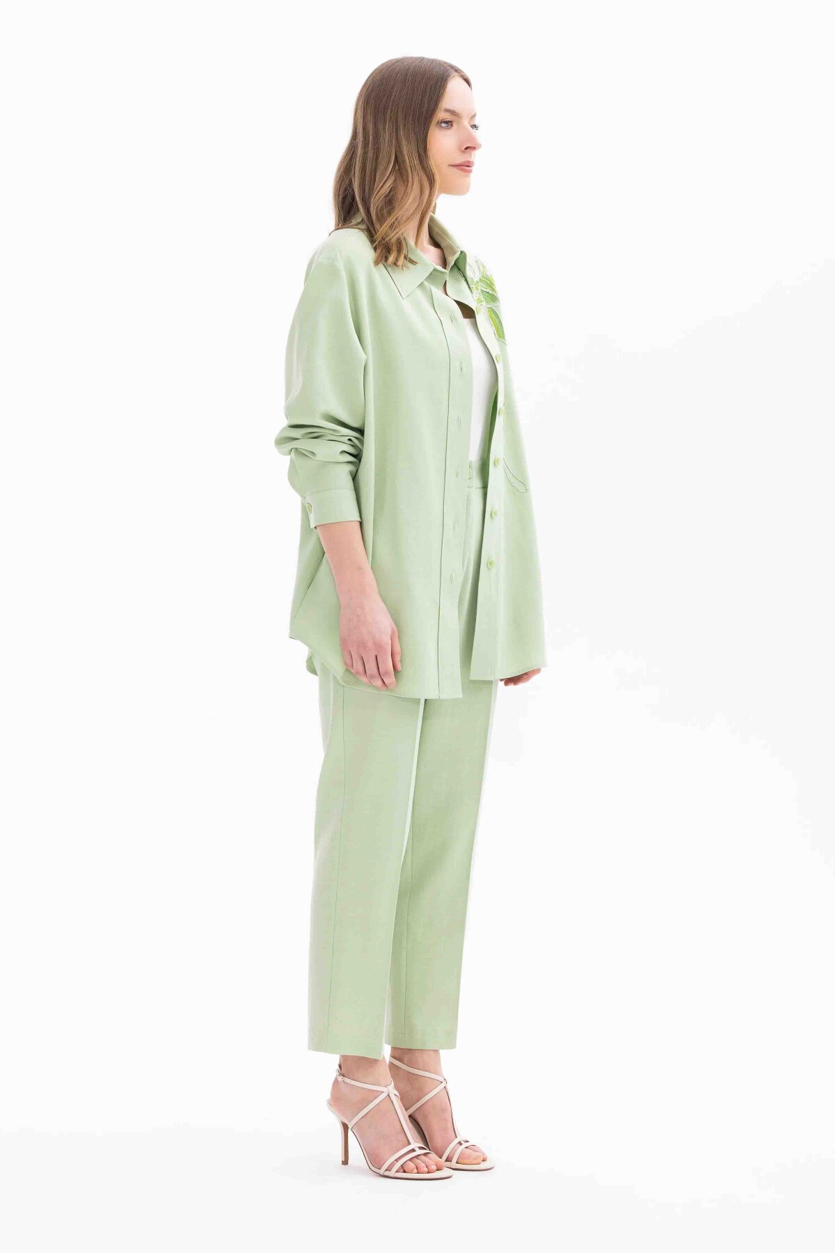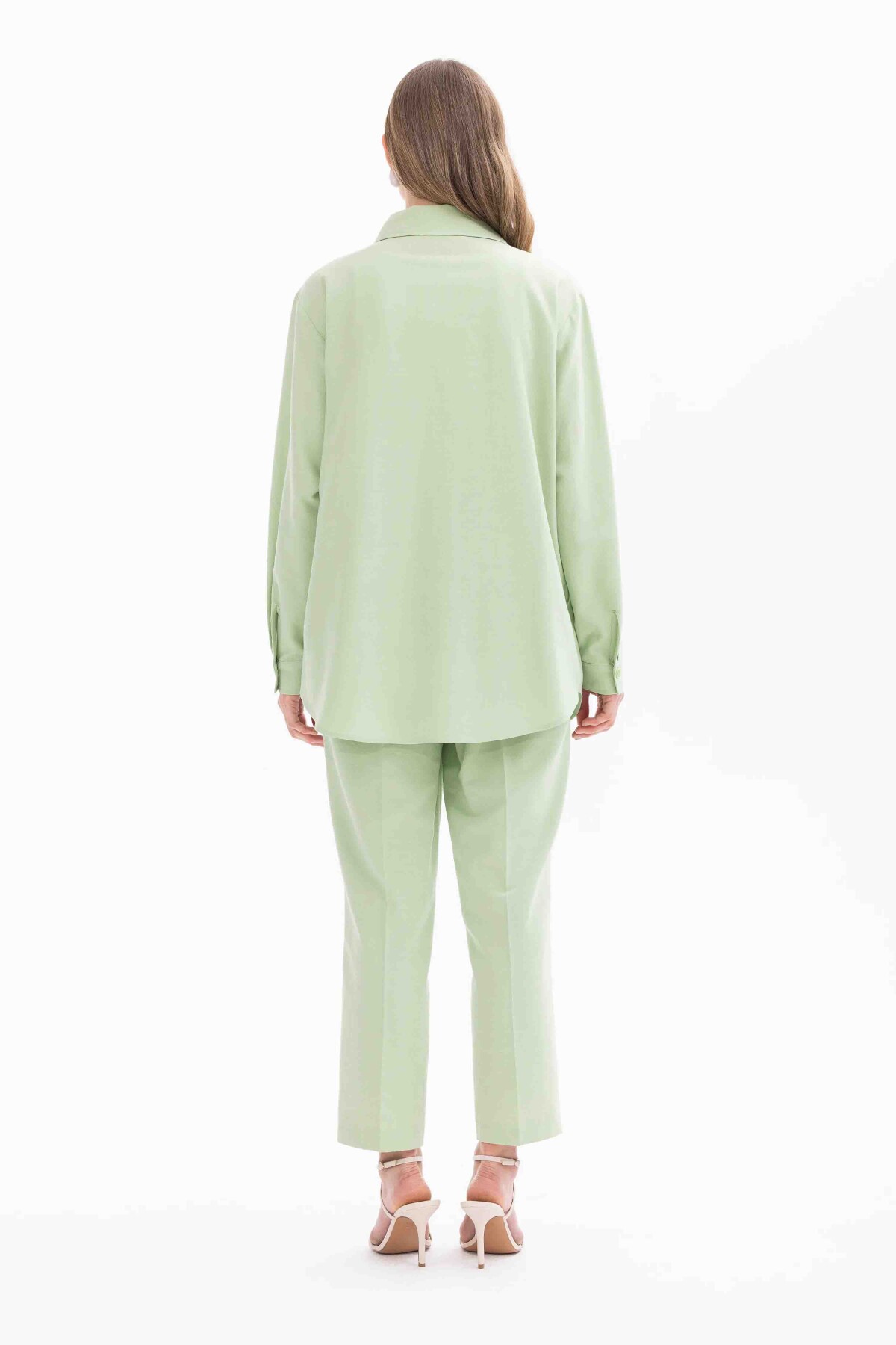 Kadın Düğmeli Bilek Boy Pantolon-Mint