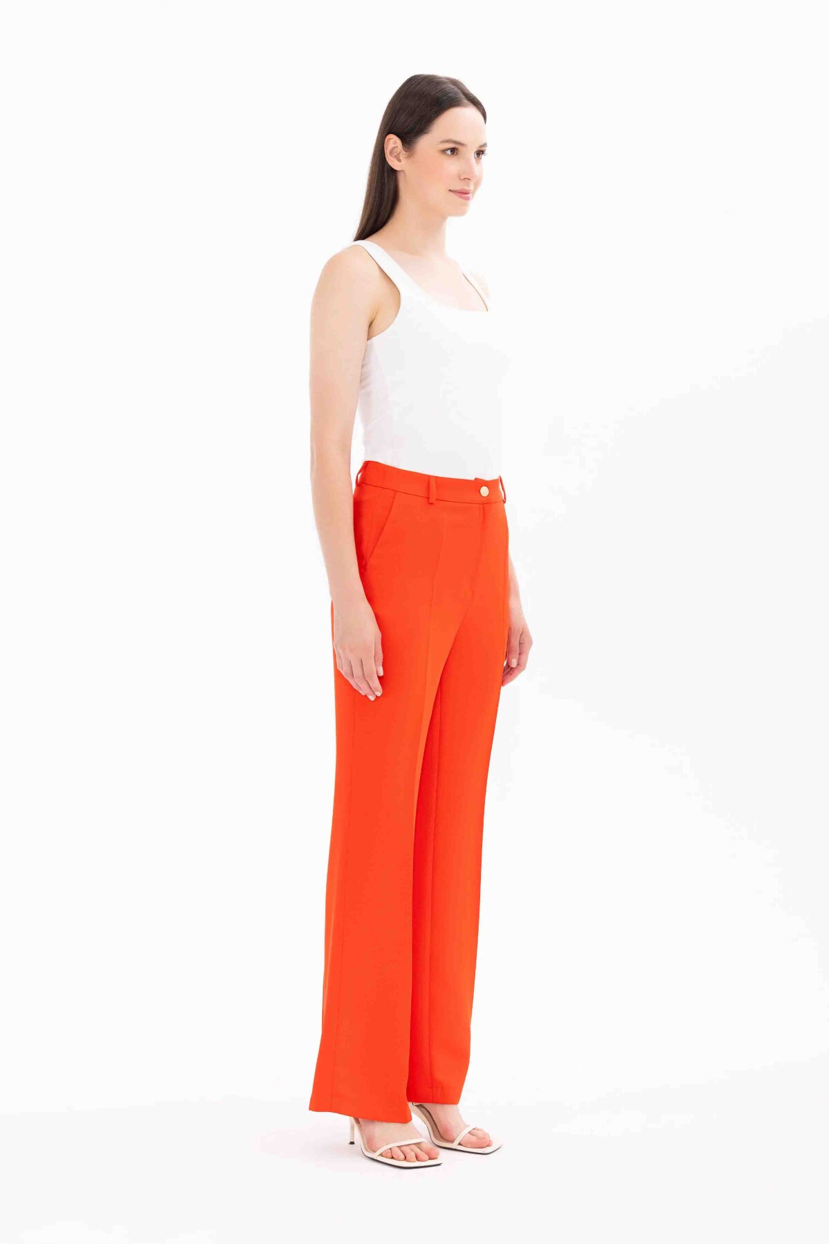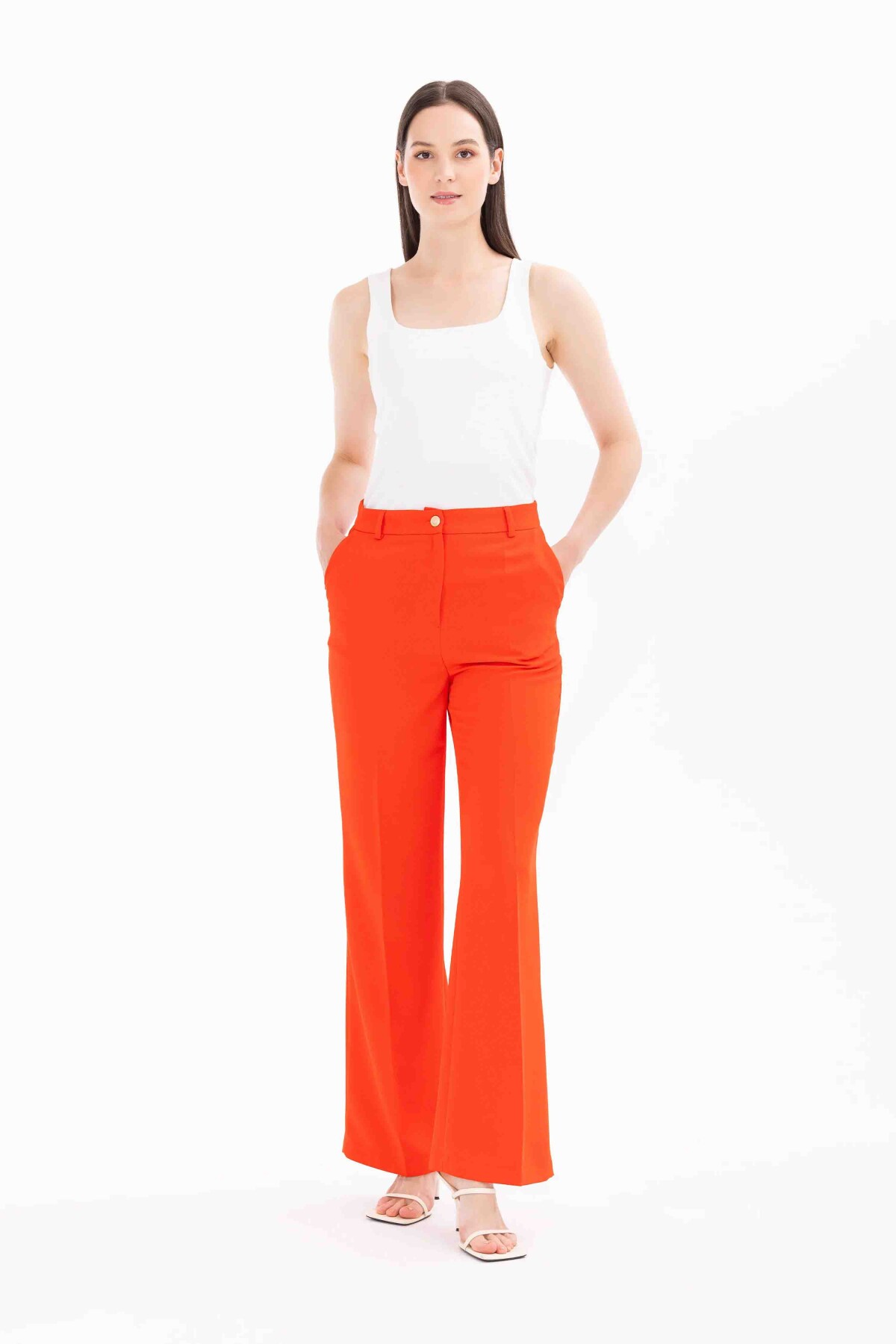 Kadın Düğmeli Cep Detaylı Pantolon-Mercan