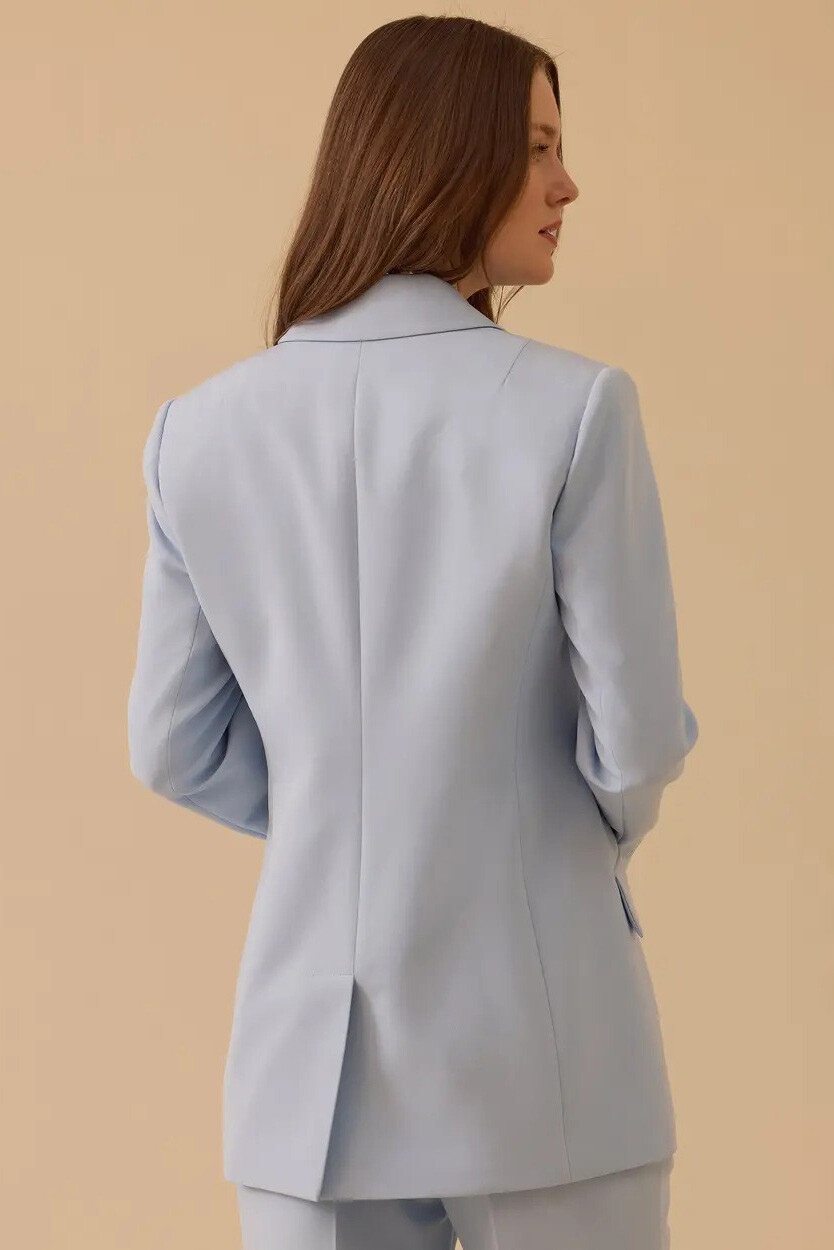 Modern kadının gücünü ve zarafetini tek bir tasarımda buluşturan bu ceket, her ortamda rafine bir duruş ve sarsılmaz bir özgüven sunar. Krep dokumanın formunu kusursuzca koruyan yapısı ve kruvaze yakanın zamansız şıklığı, profesyonel ofis stilinizden seçkin davetlere kadar her anınıza sofistike bir imza katar. Klasik kesimiyle silüetinizi zarifçe vurgulayan bu parça, şık düğme detayları ve basen altı formuyla ikonik bir görünüm vadeder.