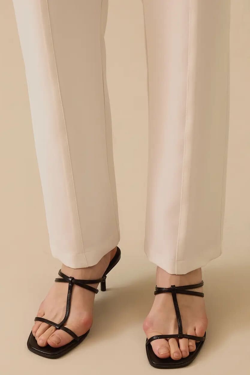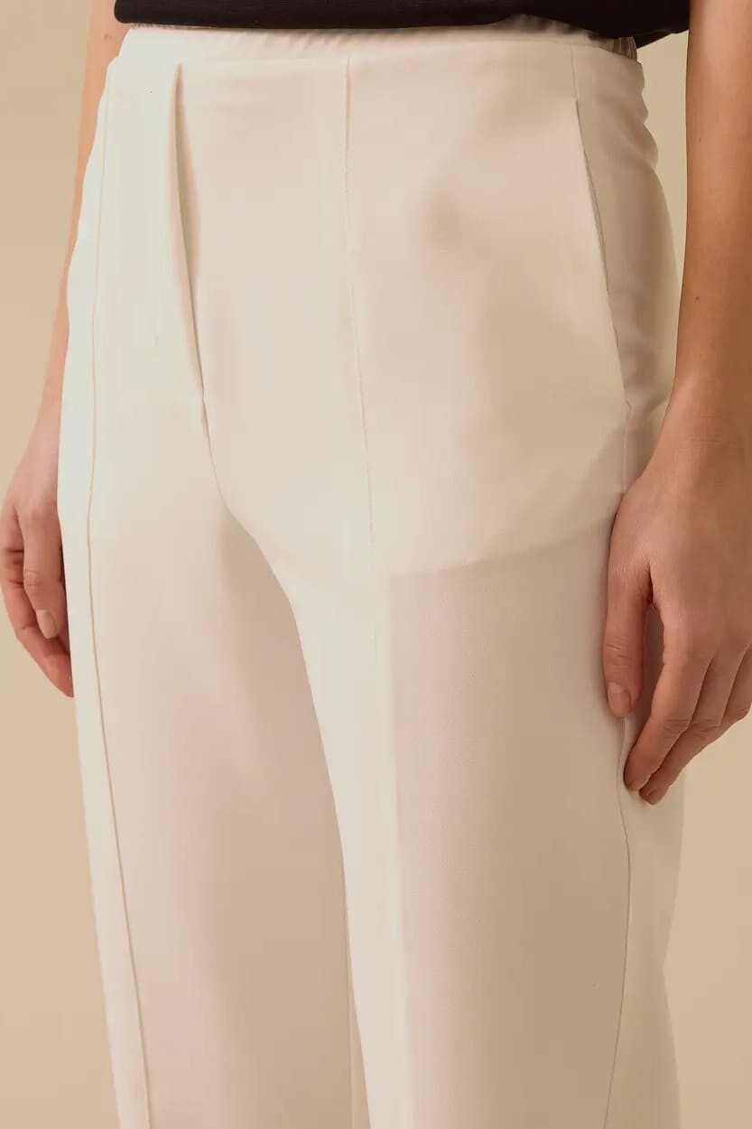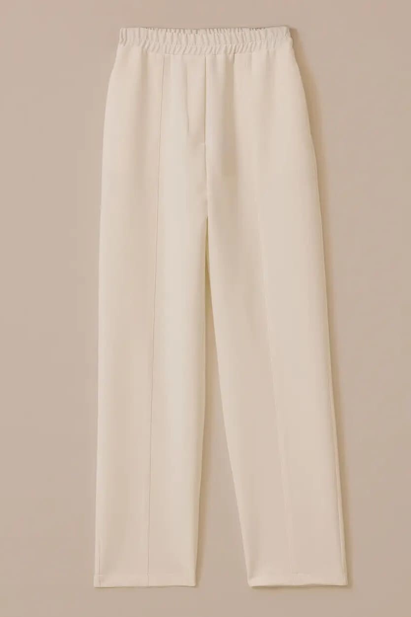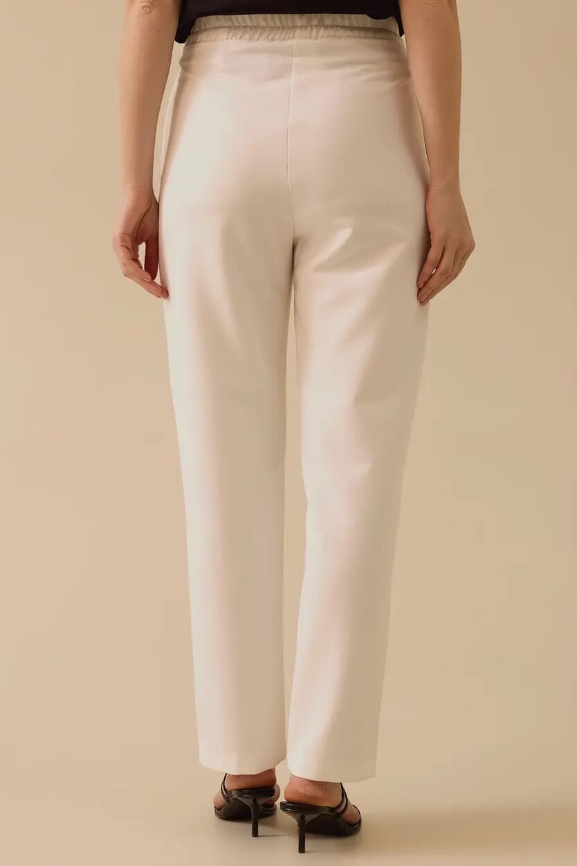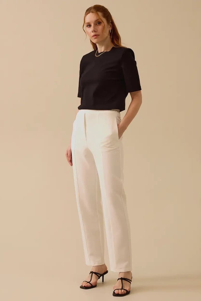 Kadın Elastik Bel Dar Paça Dokuma Kumaş Pantolon - Beyaz