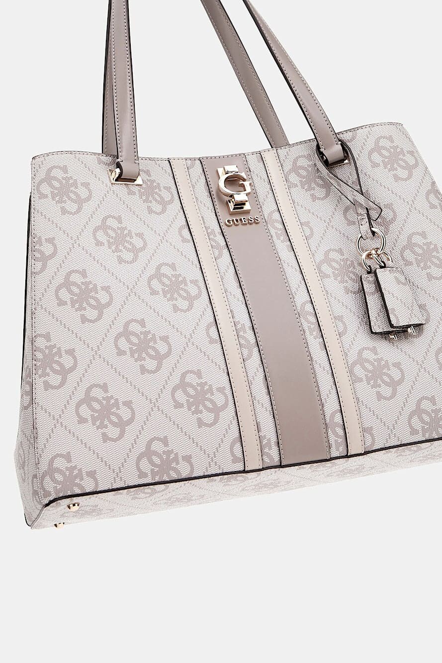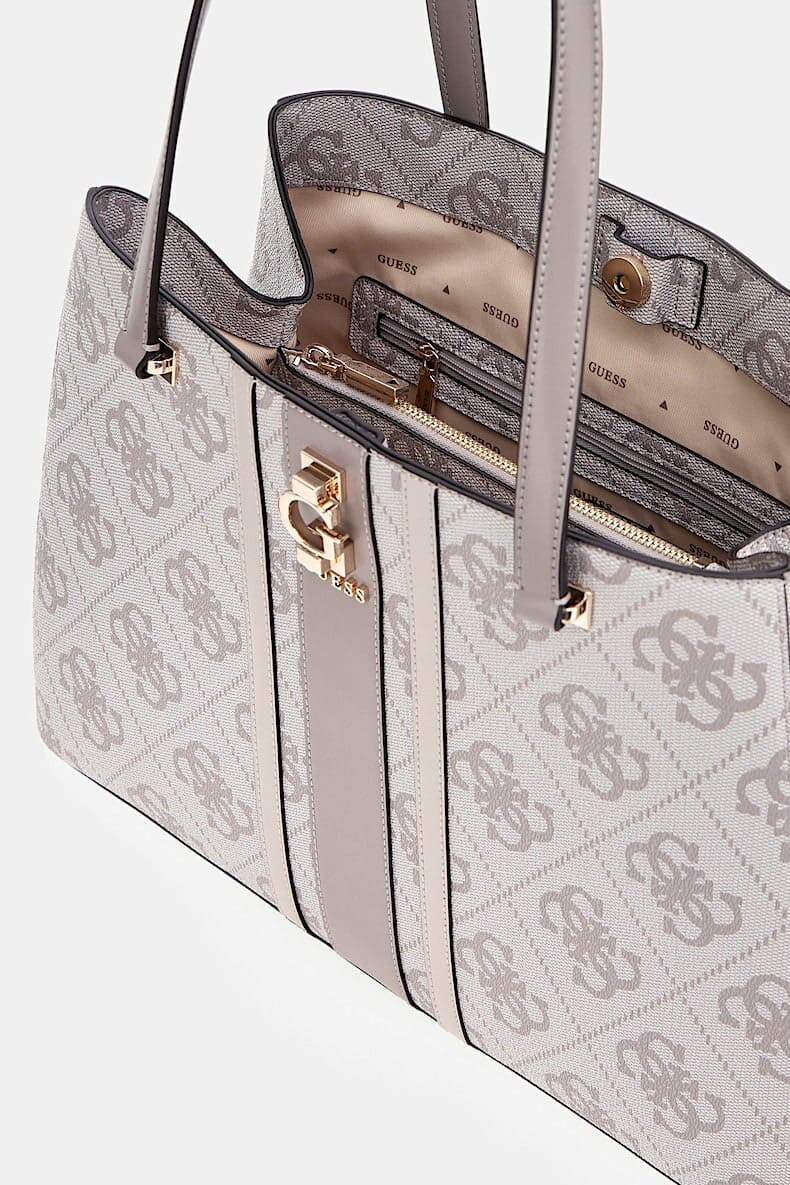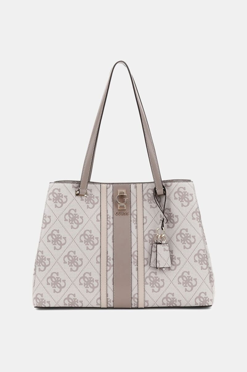 Hem şık hem de fonksiyonel olan bu omuz çantası, günlük stilinize sofistike bir dokunuş katmak için tasarlandı. Baştan aşağı monogram deseniyle kaplı olan yüzeyi ve ön kısmındaki kontrast renkli dikey şeridi, çantaya ikonik bir görünüm kazandırır. Geniş iç hacmi, logolu astarı ve fermuarlı cepleri, tüm eşyalarınızı düzenli bir şekilde taşımanıza olanak tanır. Sapındaki çıkarılabilir charm aksesuarı ve açık altın rengi metal detayları, tasarımın zarafetini tamamlar.