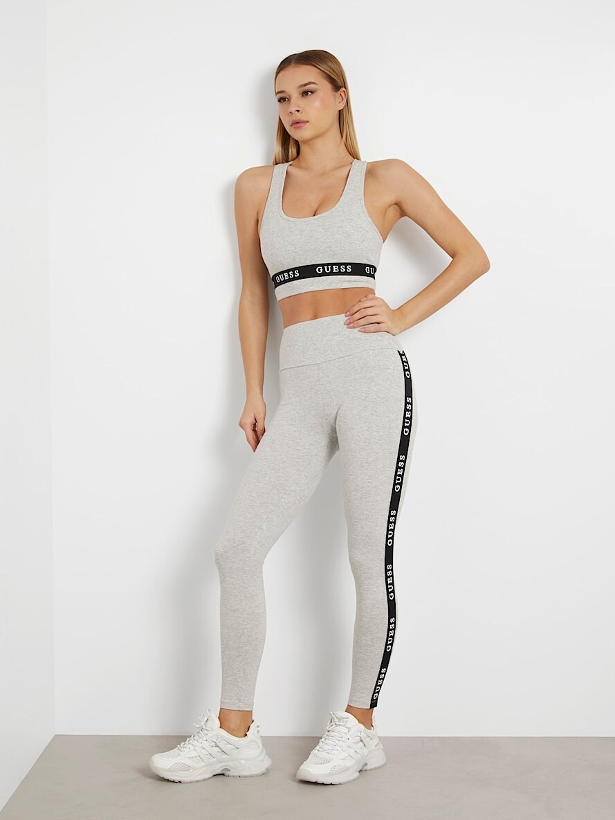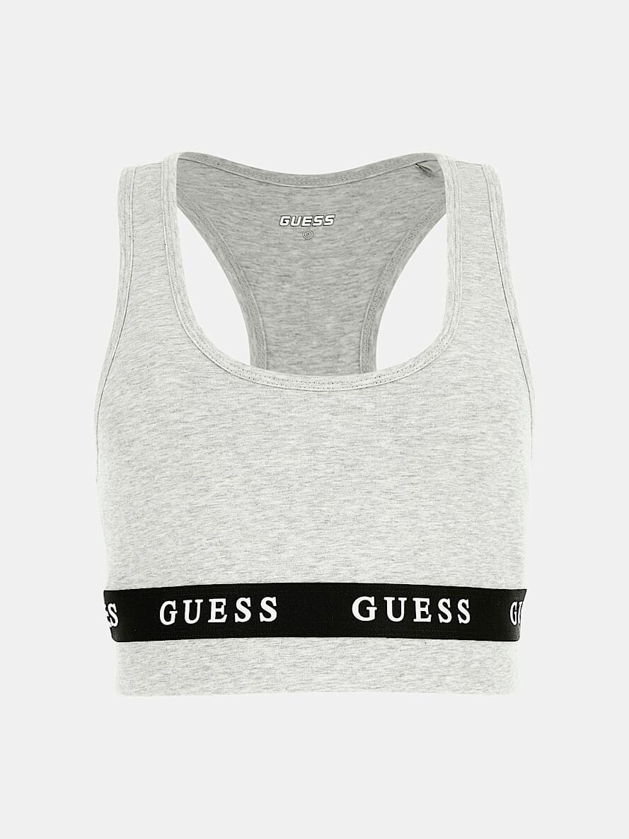 Kadın Esnek Jarse Logolu Active Crop-Gri
