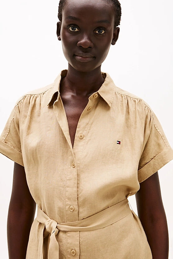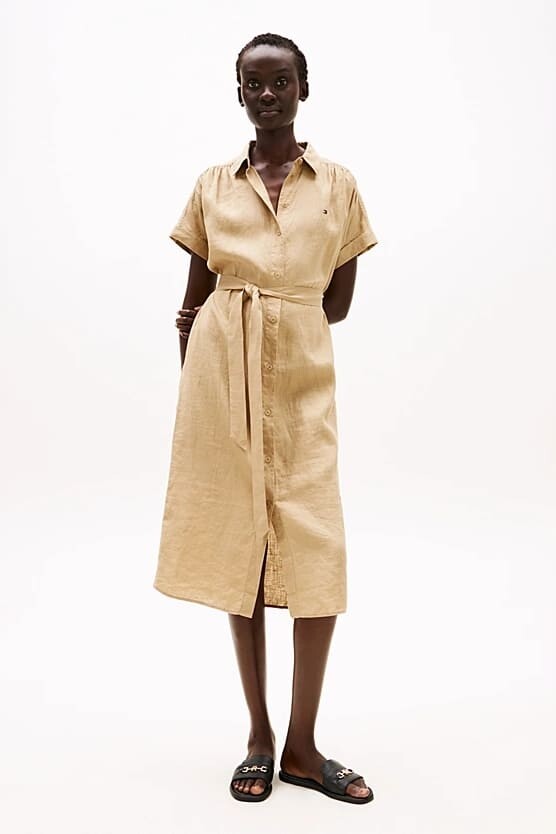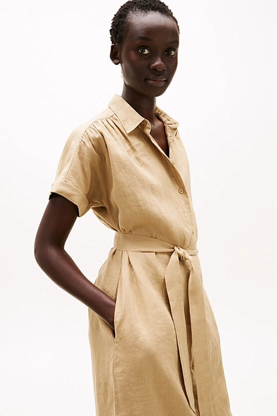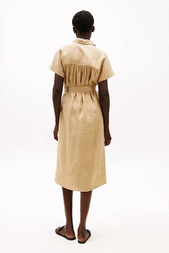 Kadın Ess Linen Midi Elbise - Camel