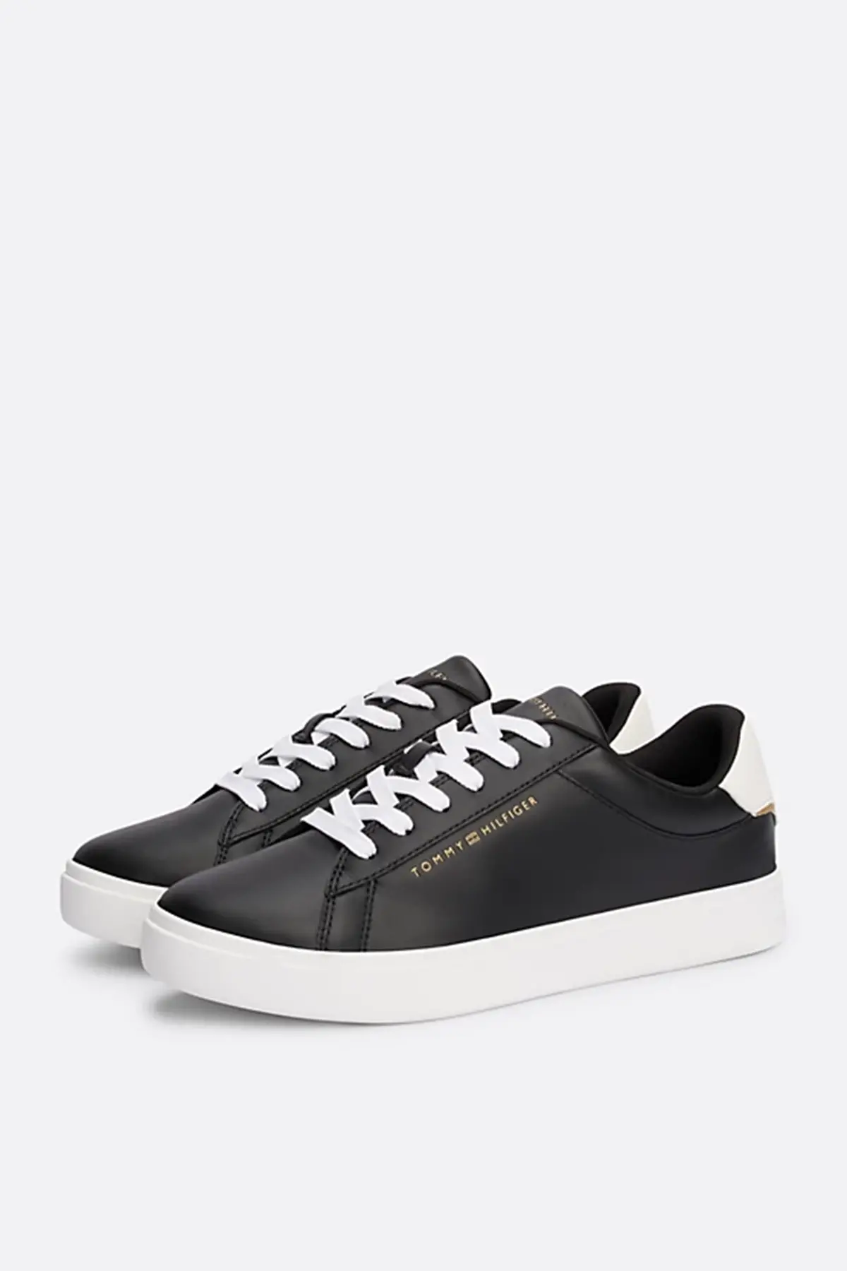 Kadın Essential Metalik Deri Kort Ayakkabısı - Siyah
