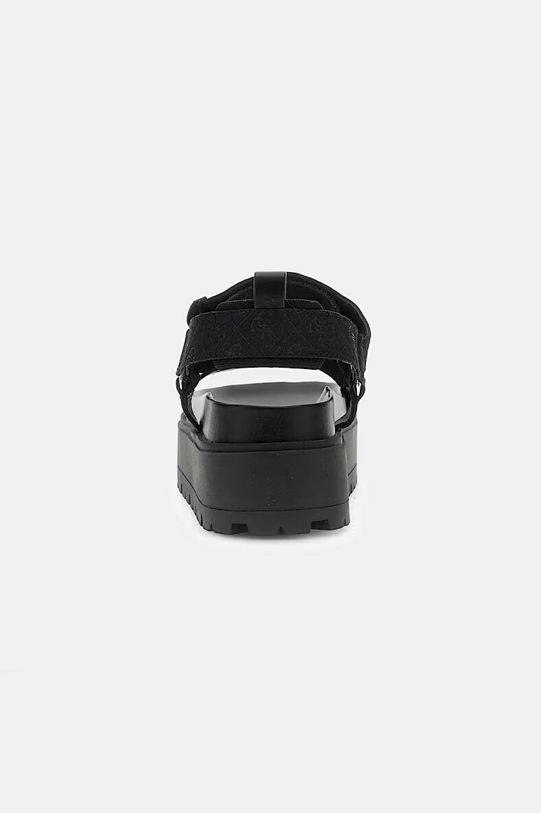 Modern silüeti ve ikonik detaylarıyla öne çıkan Fetta sandalet, yüksek platform tabanıyla stilinize iddialı bir dokunuş katarken gün boyu konfor sunar. %93 polyester ve %7 poliüretan karışımlı dayanıklı materyal yapısı, uzun ömürlü kullanım ve esneklik sağlar. Siyahın zamansız şıklığını taşıyan bu model, Guess’in karakteristik 4G logo desenli tekstil bantlarıyla markanın lüks ve dinamik estetik anlayışını yansıtır.