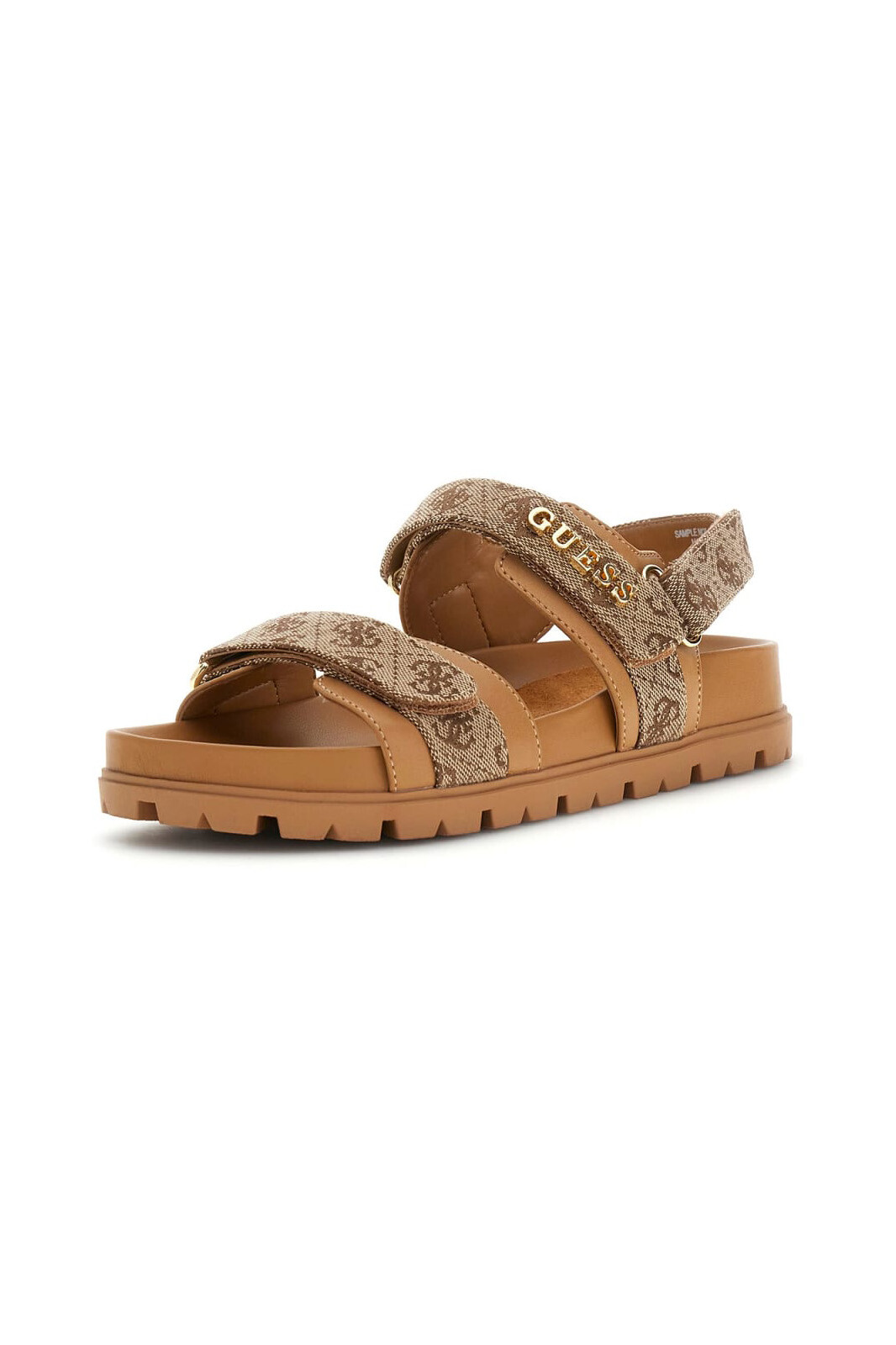 Detay: Bant üzerinde altın rengi metal "GUESS" logosu, ayarlanabilir cırt cırtlı bantlar, yüksek tırtıklı dış taban, logolu iç taban