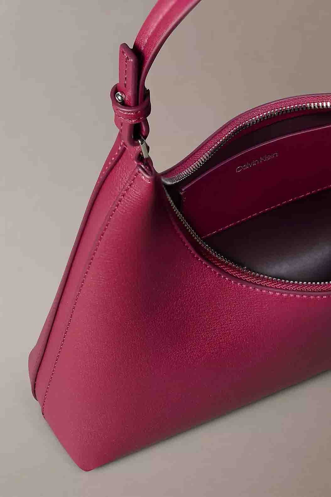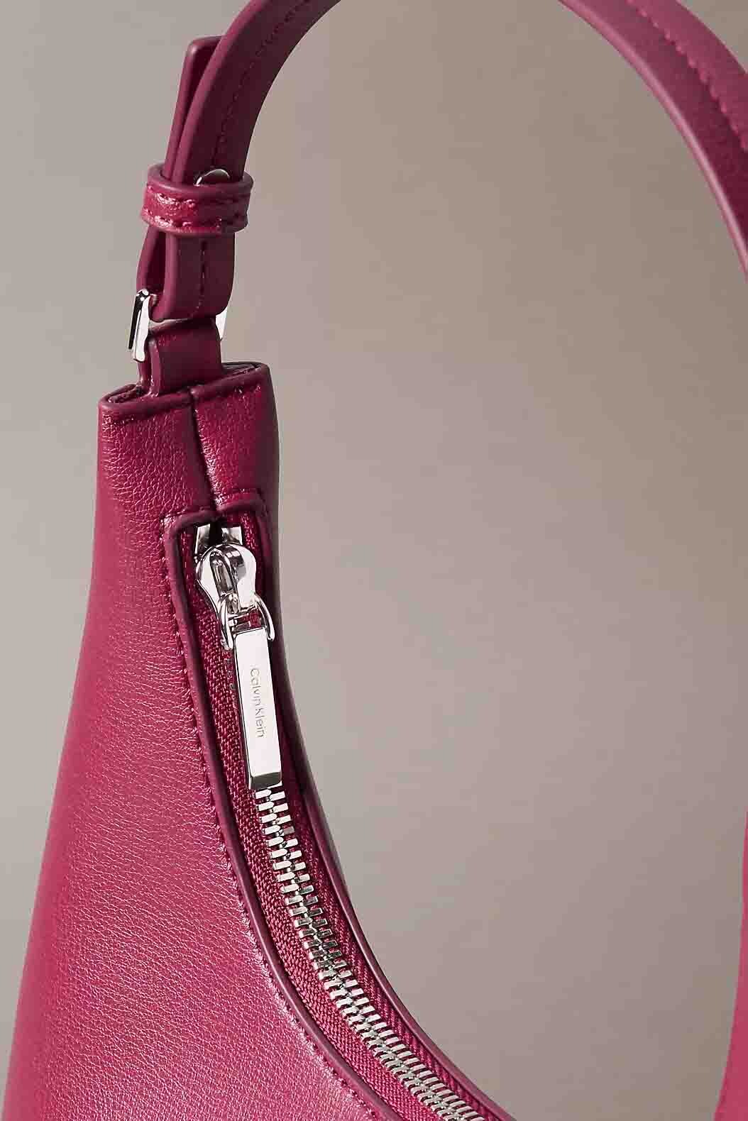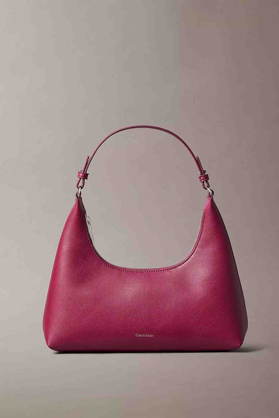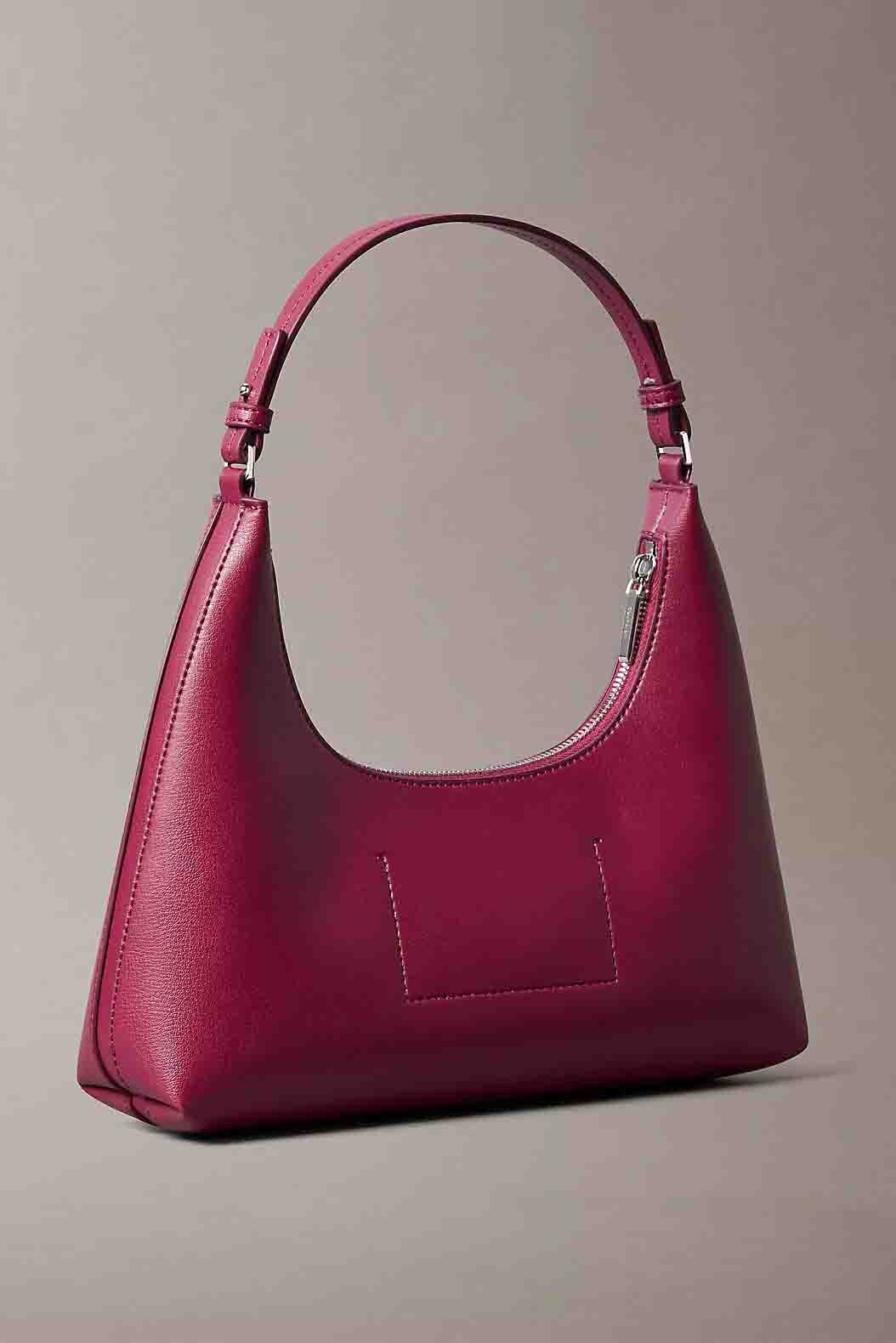 Modern baget formu ve canlı renk paletiyle öne çıkan bu omuz çantası, günlük stilinize enerjik bir şıklık katıyor. %100 poliüretan malzemeden üretilen dokulu dış yüzeyi, "hot berry" (canlı mürdüm) tonuyla birleşerek sofistike bir görsel estetik sunar. Zarif kavisli hatları ve kompakt yapısı sayesinde hem omuzda hem de elde taşımaya uygun, çok yönlü bir aksesuardır.