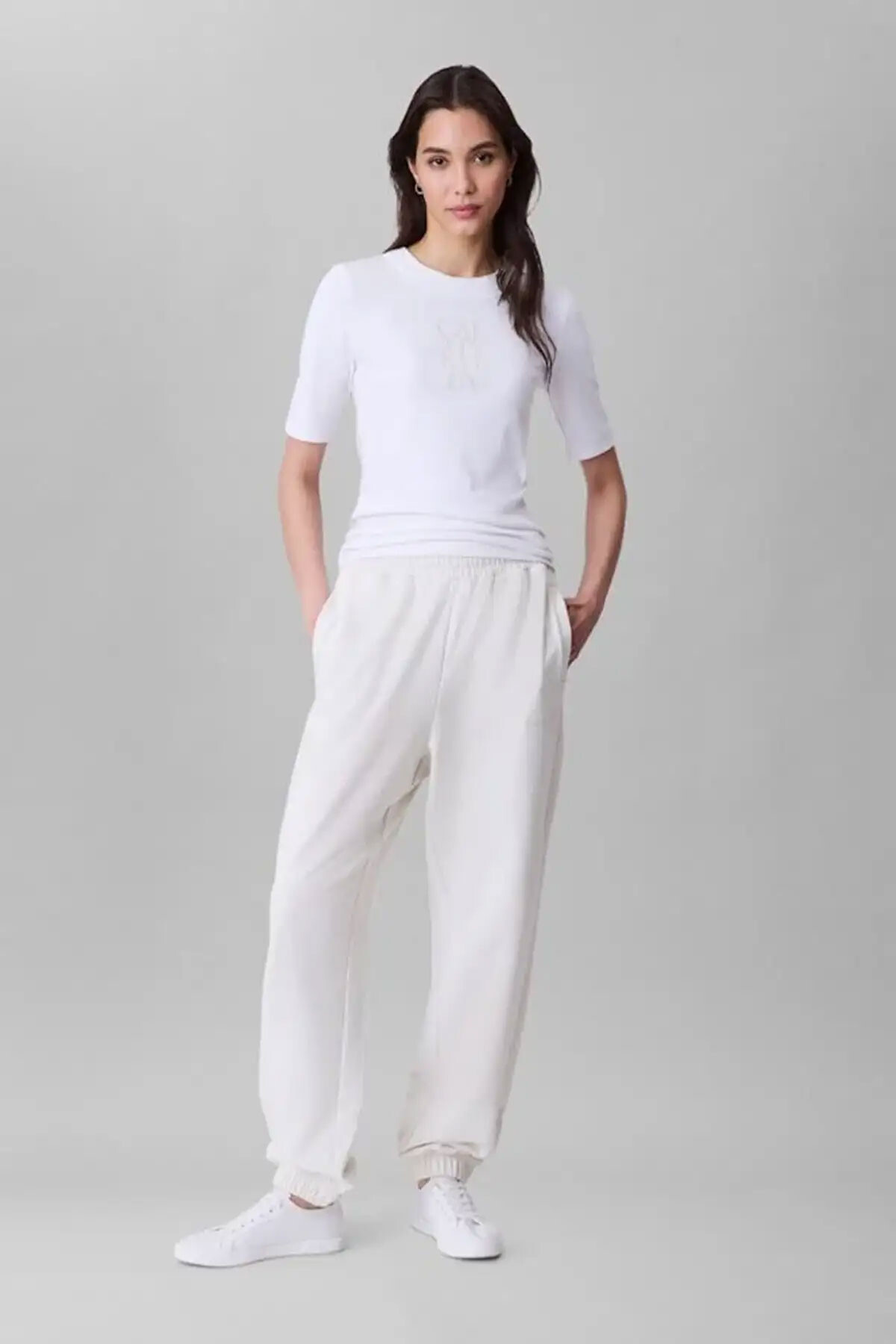 Kadın eşofman altı modeli, %100 pamuk kumaşı ile gün boyu rahatlık sunar. Yumuşak dokusu ve tam kalıbıyla konforlu bir kullanım sağlar. Bel bölgesindeki elastik yapı sayesinde rahat hareket imkanı verir. Minimal tasarımı ve logolu detayı ile günlük stiliniz için idealdir.