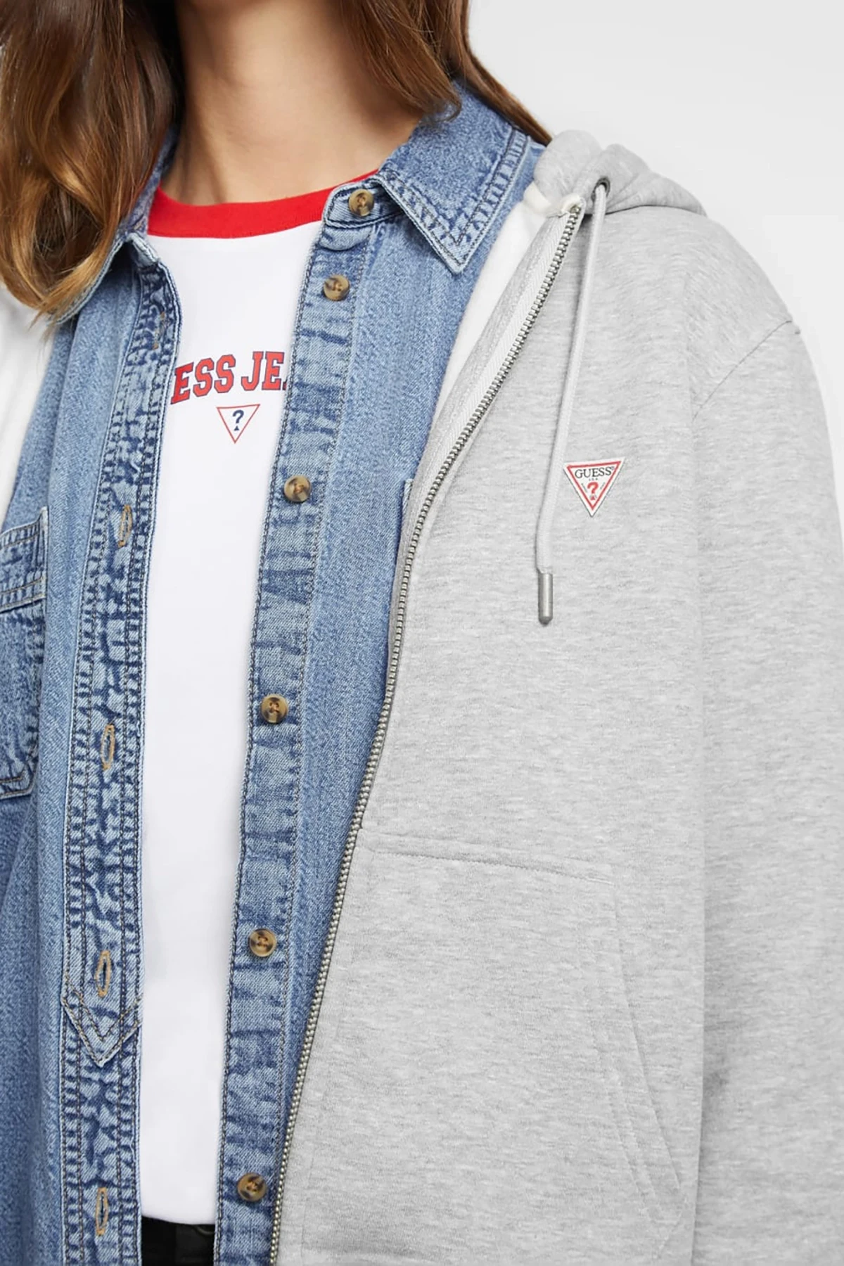 Kadın Gj Mini Yama Fermuarlı Sweatshirt - Gri