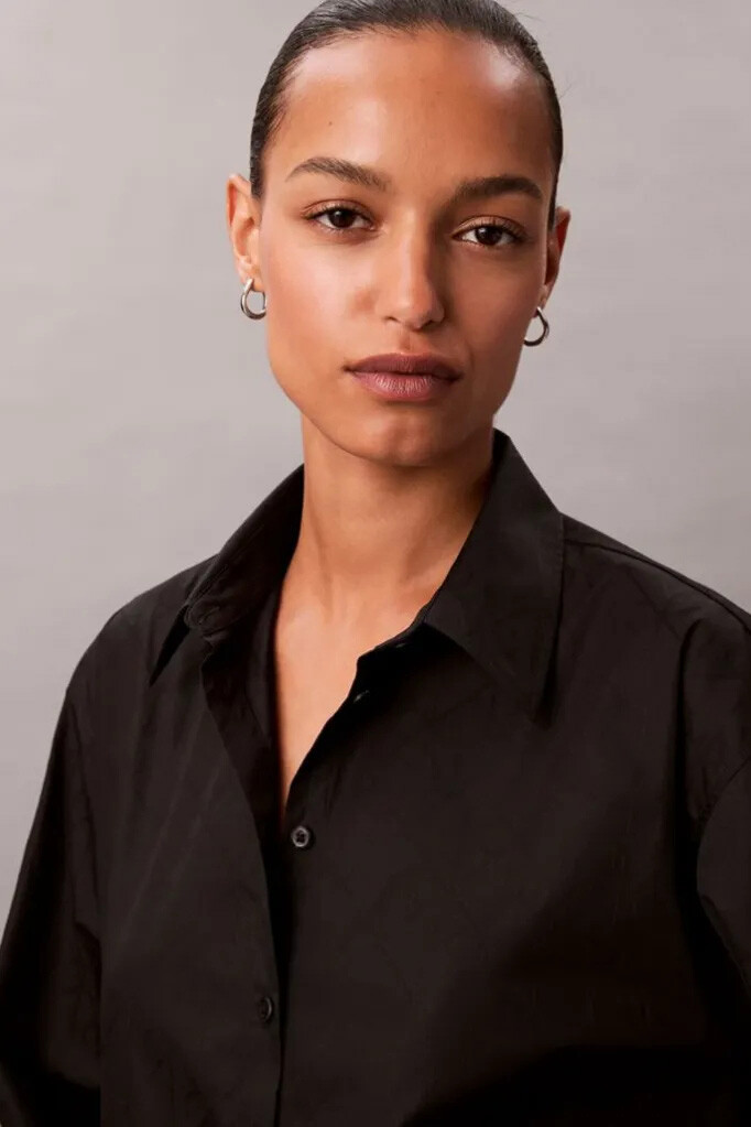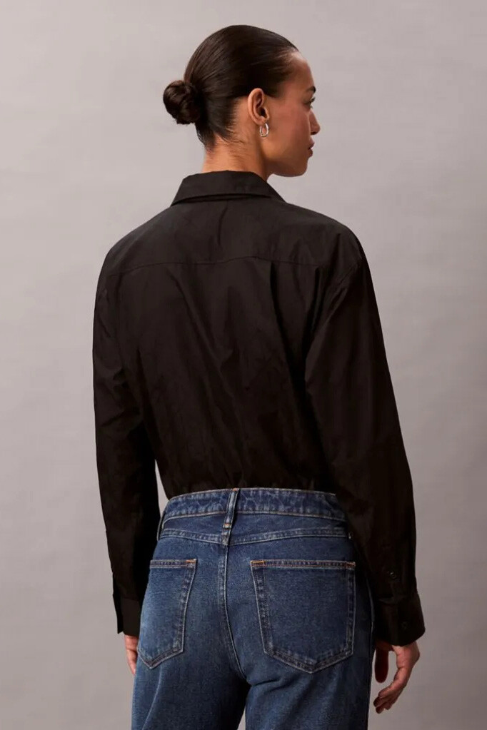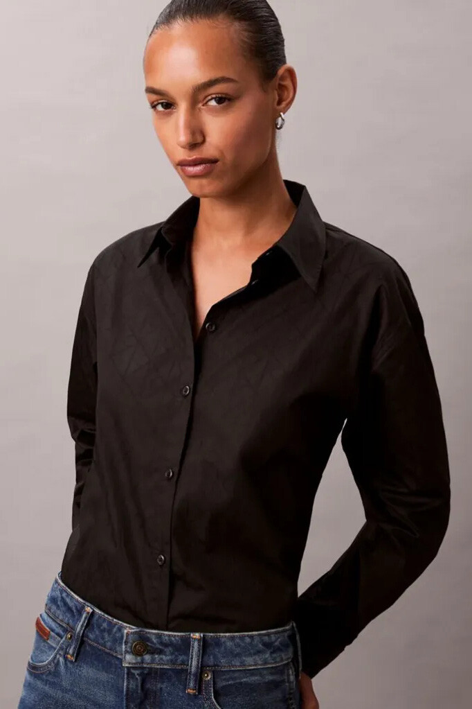 Siyahın zamansız asaletini modern detaylarla harmanlayan bu kadın gömlek, %100 pamuklu doğal dokusuyla gün boyu nefes alan, ferah bir kullanım sunar. Tasarımın tamamına yayılan ince ve tonal logo desenleri (AOP), kumaşa sofistike bir doku ve derinlik kazandırır. "Perfect Fit" kalıbı sayesinde vücuda ne çok oturan ne de bol gelen ideal bir duruş sergiler. Klasik gömlek yakası, manşetli uzun kolları ve tam boy düğmeli ön kapamasıyla hem ofis şıklığında hem de günlük kombinlerde zahmetsizce tercih edebileceğiniz, gardırobunuzun kilit parçalarından biridir. Esnek olmayan kumaş yapısı, gömleğin formunu uzun süre korumasına yardımcı olur.