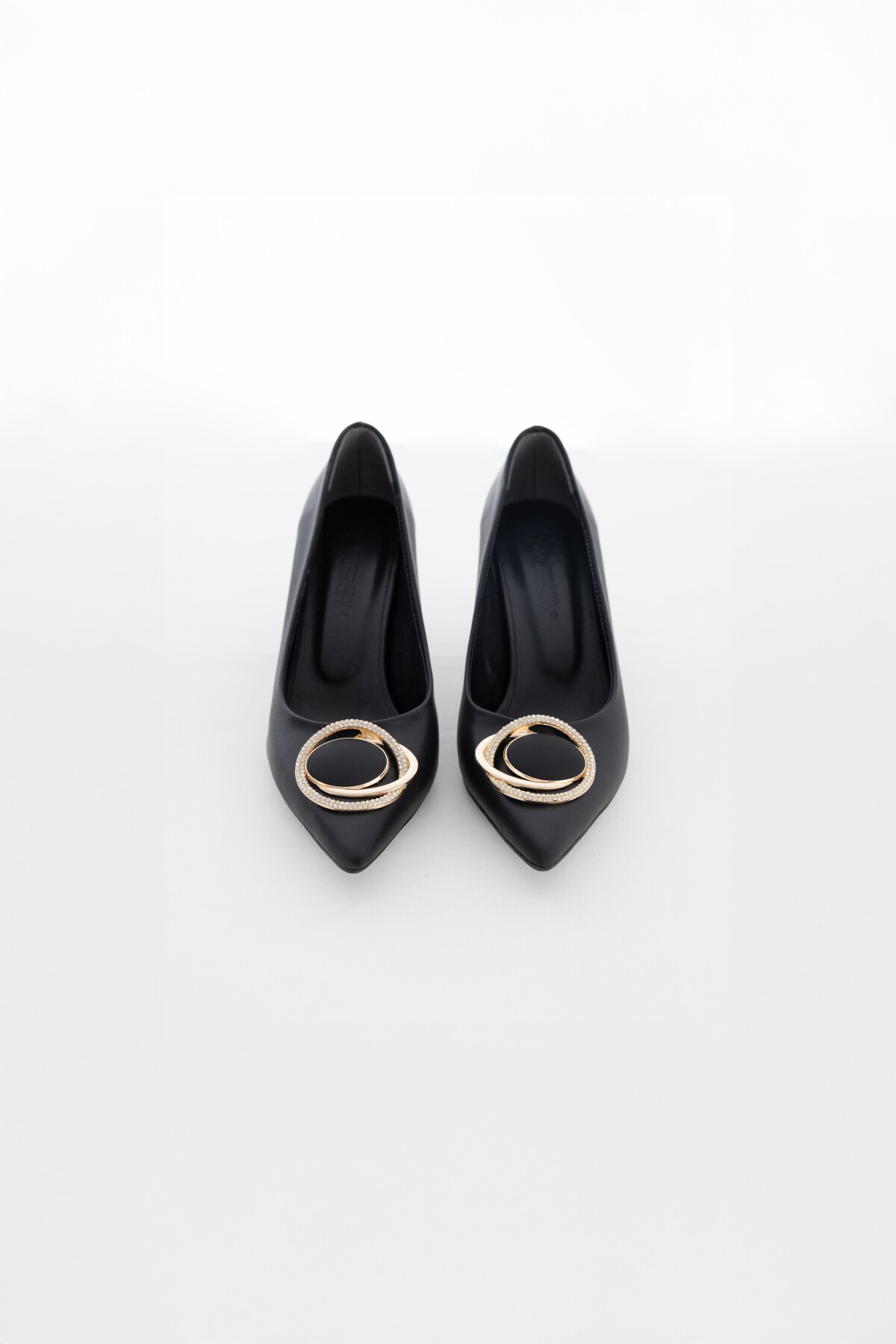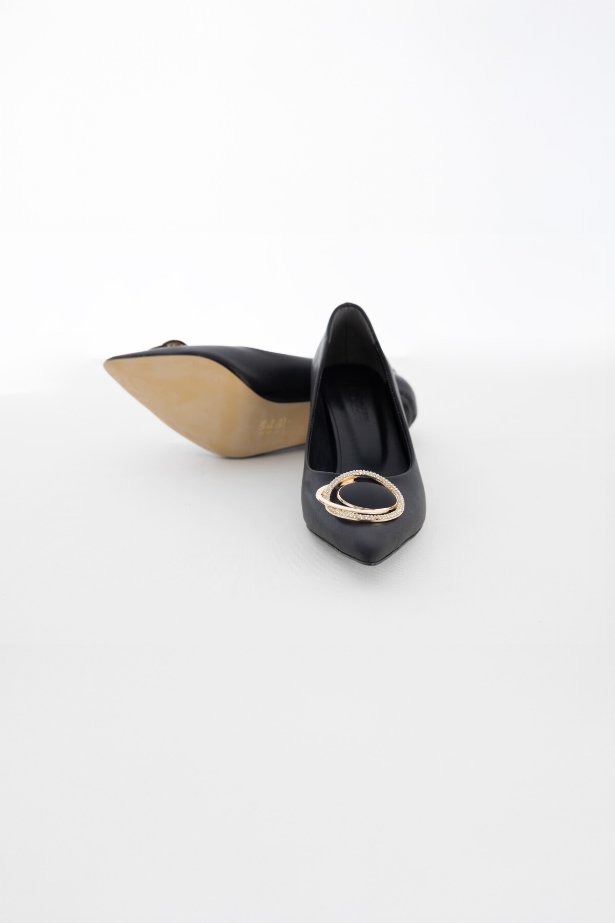 Kadın Halka Tokalı Sivri Burun Topuklu Ayakkabı - Siyah