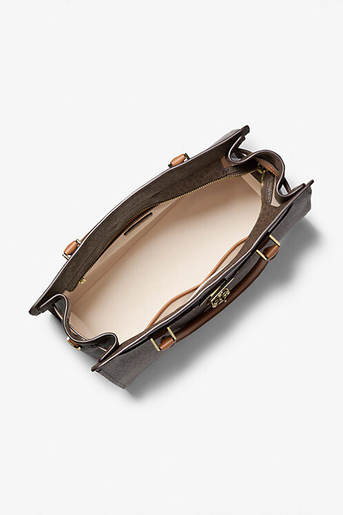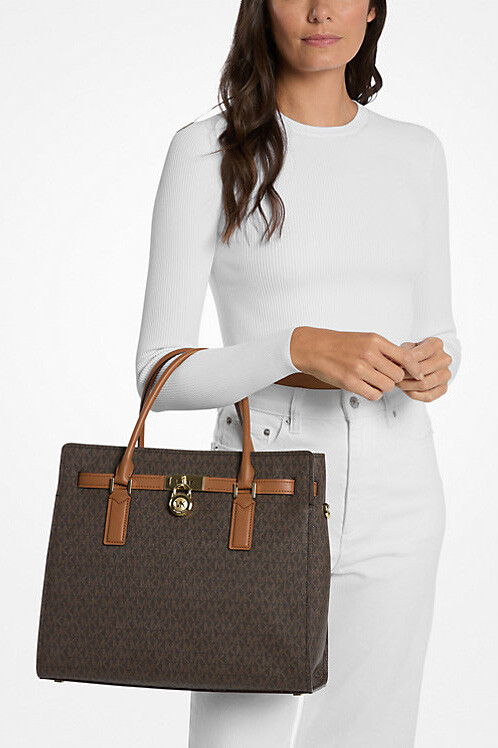 İkonik marka logolu desenli yüzeyi ve ön kısmındaki şık kilit aksesuarı ile dikkat çeken Hamilton Moderne, sofistike bir stil sunuyor. %100 Poliüretan malzemeden üretilen bu çanta, geniş iç hacmi ve büyük boy yapısı sayesinde hem günlük ihtiyaçlarınızı hem de ofis gereçlerinizi taşımak için idealdir. Altın rengi metal detayları ve zincir askı süslemesi tasarıma ışıltı katarken, elde veya omuzda taşıma imkanı sunan fonksiyonel yapısı şıklığı pratiklikle buluşturur.
