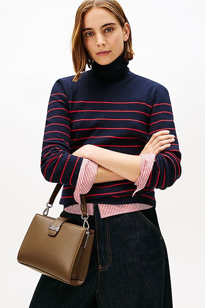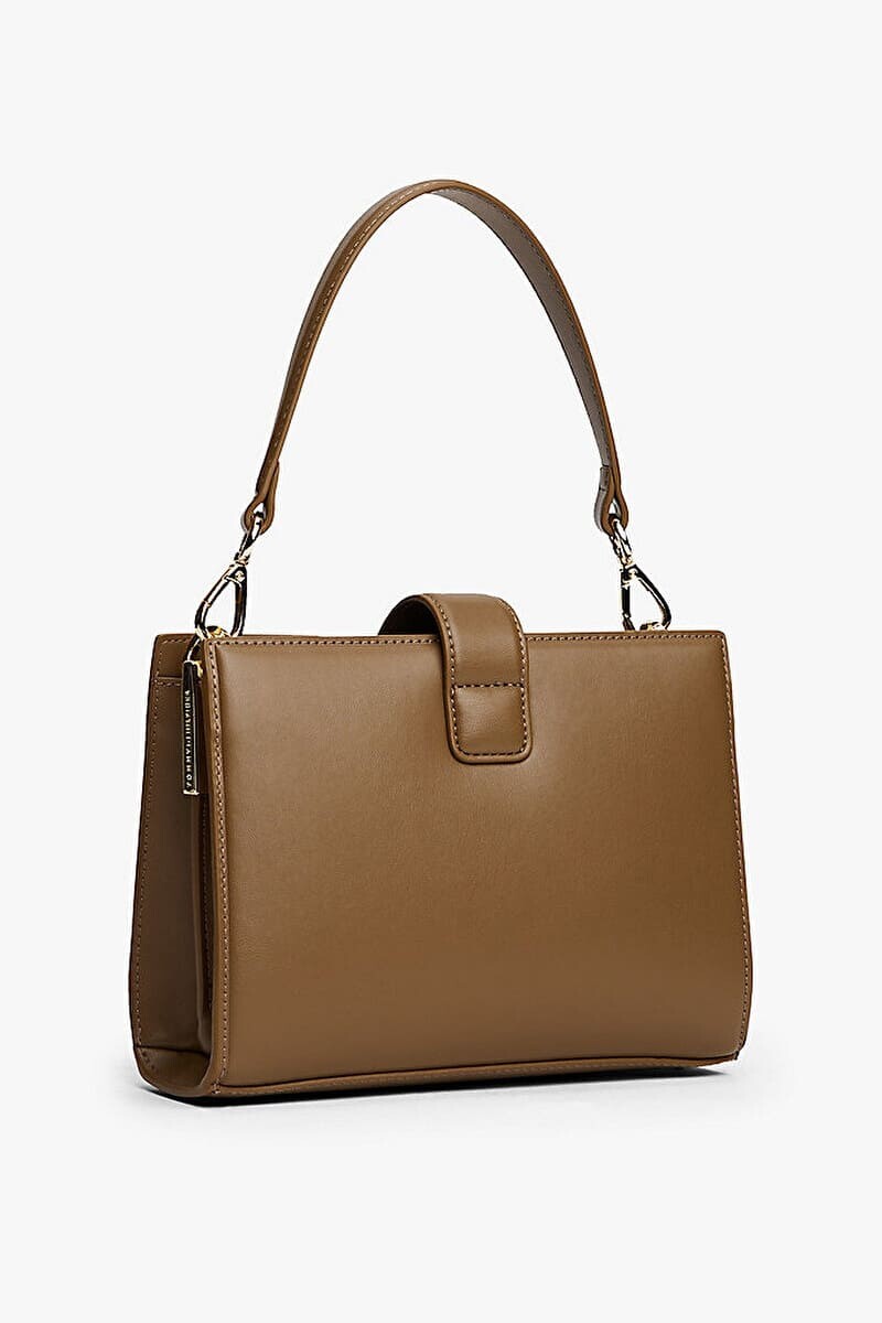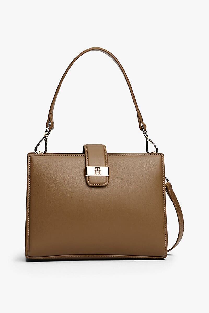 Kahverenginin klasik ve zamansız şıklığını yansıtan bu Heritage Mini Satchel, modern detaylarla güncellenen ikonik bir duruş sergiliyor. Çantanın pürüzsüz ve net hatlara sahip gövdesi, ön kapak üzerinde yer alan özel tasarım gold renkli "TH" metal toka ile zenginleştirilerek markanın mirasına zarif bir gönderme yapıyor. Kompakt yapısına rağmen 22 cm'lik genişliği ile günlük temel ihtiyaçlarınızı düzenli bir şekilde taşımanızı sağlar. Şık el tutma sapıyla klasik bir duruş sergileyebileceğiniz gibi, takıp çıkarılabilen uzun askısı sayesinde omzunuza asarak ellerinizi serbest bırakabilir ve şehir hayatının temposuna ayak uydurabilirsiniz.