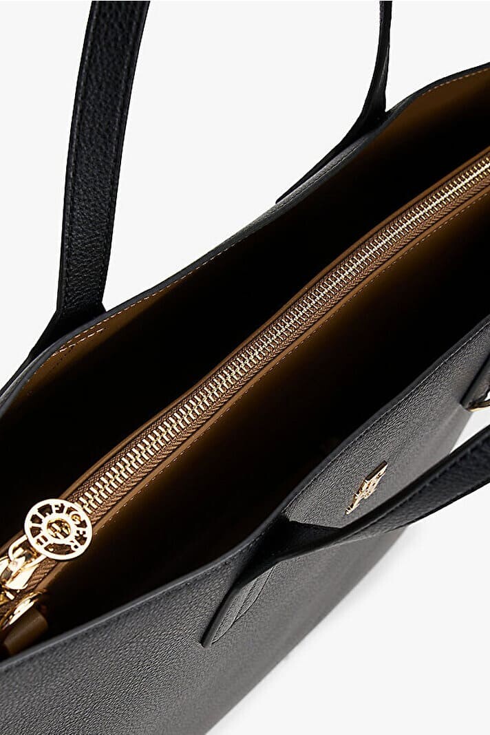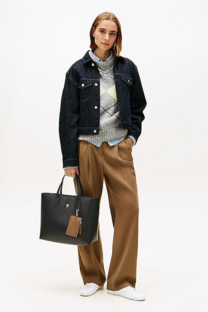 İş hayatından şehir gezmelerine kadar her anınıza eşlik edecek bu Icon Satchel, siyahın asaletini fonksiyonel bir tasarımla sunuyor. 40 cm'lik geniş yapısı, evraklarınızdan kişisel eşyalarınıza kadar ihtiyaç duyduğunuz her şeyi düzenli bir şekilde taşımanız için cömert bir alan sağlar. Çantanın pütürlü dokusu, ön yüzdeki minimal gold renkli "TH" metal logosu ile birleşerek sofistike bir duruş sergiler. Sağlam el tutma saplarının yanı sıra, takıp çıkarılabilen uzun omuz askısı sayesinde kullanım şeklini ihtiyacınıza göre özelleştirebilirsiniz. Fermuarlı güvenli kapama sistemi ile tamamlanan bu model, modern kadının gardırobundaki kurtarıcı parça olmaya aday.