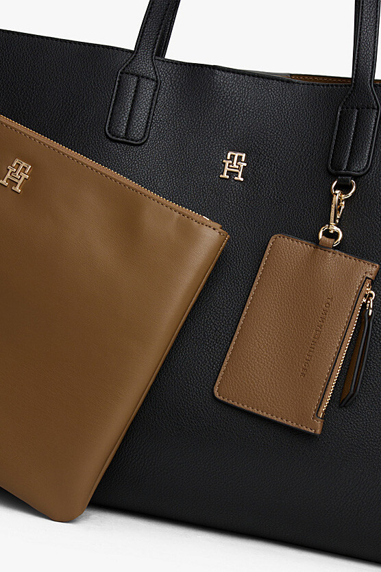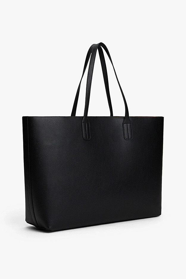 Siyahın zamansız şıklığını minimalist bir tasarımla sunan bu Icon Tote çanta, 50 cm'lik etkileyici genişliğiyle günlük hayatınızın tüm yükünü stil sahibi bir şekilde taşıyor. Pürüzsüz dokusu ve net hatları, ön yüzdeki zarif gold renkli metal logo ve askıdaki minimal halka detayı ile birleşerek sofistike bir duruş sergiliyor. Geniş iç hacmi; dizüstü bilgisayar, dosya ve kişisel eşyalarınızı rahatlıkla sığdırabileceğiniz cömert bir alan sunarken, ideal uzunluktaki omuz askıları gün boyu konforlu bir kullanım sağlar. Hem ofis şıklığınızı tamamlayacak hem de alışveriş günlerinizde size eşlik edecek, fonksiyonelliği zarafetle buluşturan kurtarıcı bir parça.