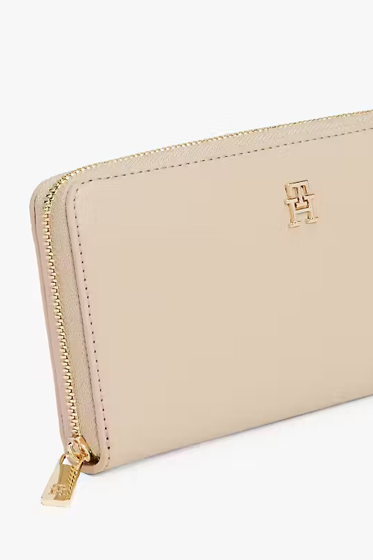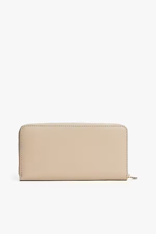 Kadın İkonik Logolu Fermuarlı Cüzdan - Bej