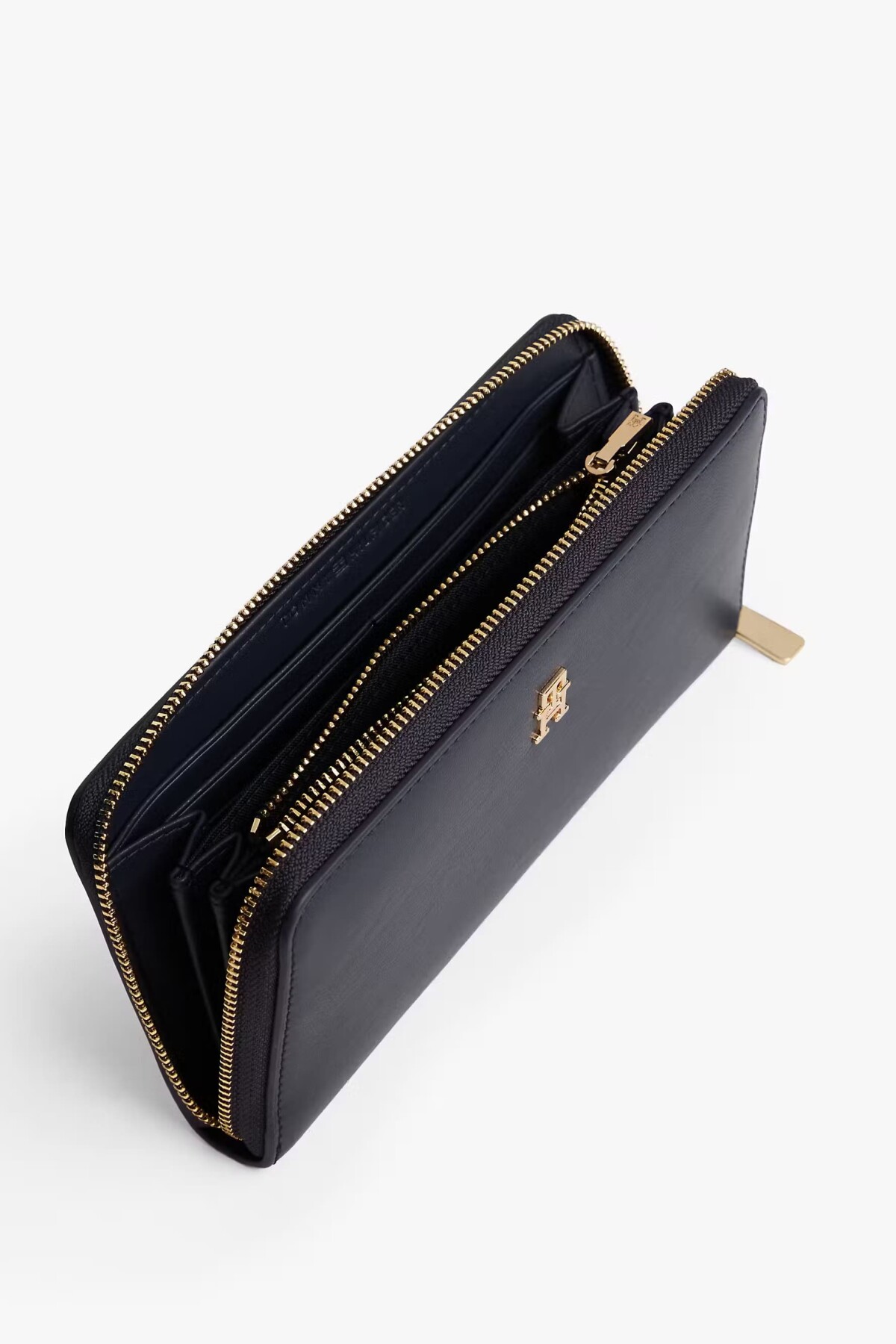 Sade şıklığı ve fonksiyonelliği bir arada sunan bu cüzdan, stil sahibi kadınların vazgeçilmezi olmaya aday. Pürüzsüz yüzeyi ve ön kısmında yer alan parlak metalik logo detayı ile sofistike bir görünüm sergiler. Çepeçevre fermuarlı kapanışı, eşyalarınız için üst düzey güvenlik sağlarken; kartlıklar, kağıt para bölmeleri ve fermuarlı bozuk para gözünden oluşan geniş iç hacmi mükemmel bir organizasyon sunar.