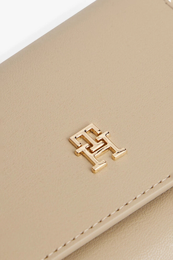 Kadın İkonik Logolu Üç Katlı Cüzdan - Bej