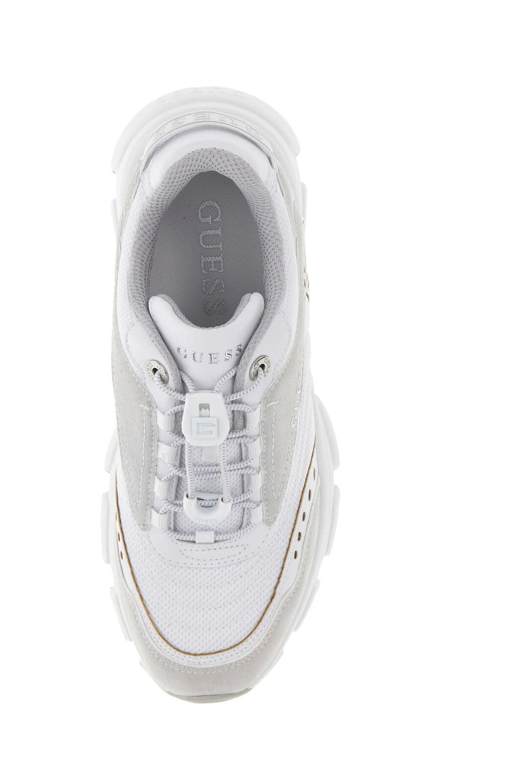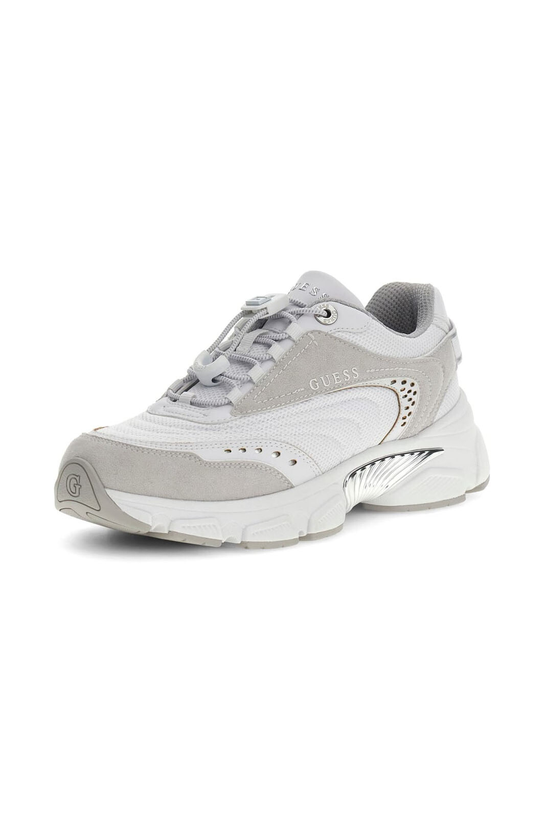 Detay: Kilitli bağcık sistemi, metalik yan panel, topukta Guess logo şeridi