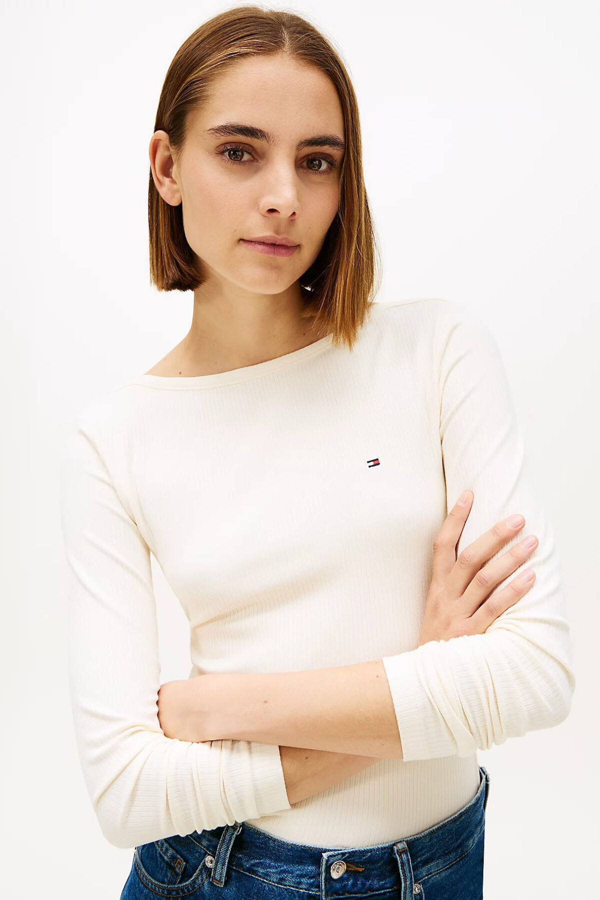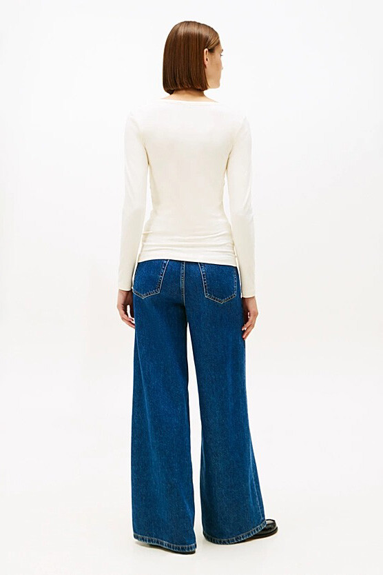Zahmetsiz şıklığın anahtarı olan uzun kollu bluz, sıcak ve doğal krem tonuyla gardırobunuza sakin bir zarafet getiriyor. Omuz hattını estetik bir şekilde vurgulayan kayık yaka tasarımı, bu parçayı klasik bir tişörtten ayırarak feminen ve sofistike bir duruş sergiliyor. Sürdürülebilir viskon içeren esnek kumaşı, cildinizde ipeksi ve serin bir his bırakırken; ince fitilli dokusu ürüne derinlik ve modern bir hava katıyor. Vücudu nazikçe saran slim fit kesimi ve uzun kollu yapısı sayesinde, ister tek başına ister ceket içlerinde kullanabileceğiniz çok yönlü bir tamamlayıcı.