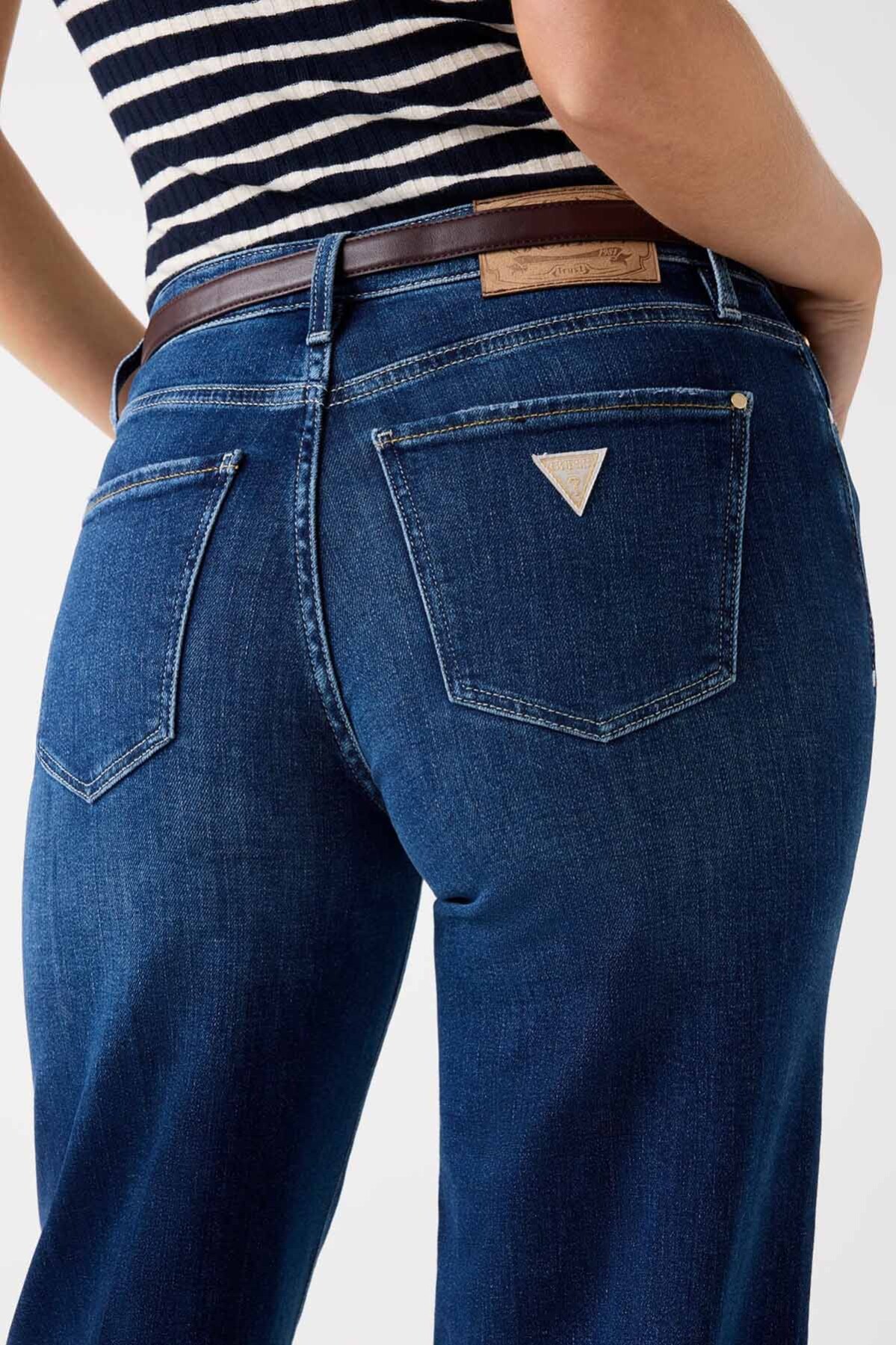 Jean konforunu lüks bir dokunuşla birleştiren bu pantolon, gardırobunuzun en özel parçalarından biri olmaya aday. İçeriğindeki kaşmir karışımı, denime beklenmedik bir yumuşaklık ve üstün bir konfor hissi katarken, esnek yapısı gün boyu rahatlık sağlar. Vücudu saran yüksek beli ve kalçadan itibaren genişleyerek inen palazzo kesimi, bacak boyunu daha uzun göstererek zarif ve modern bir silüet yaratır. Hem gündelik hem de şık kombinlerinizde kullanabileceğiniz bu jean, zahmetsiz bir zarafet sunar.