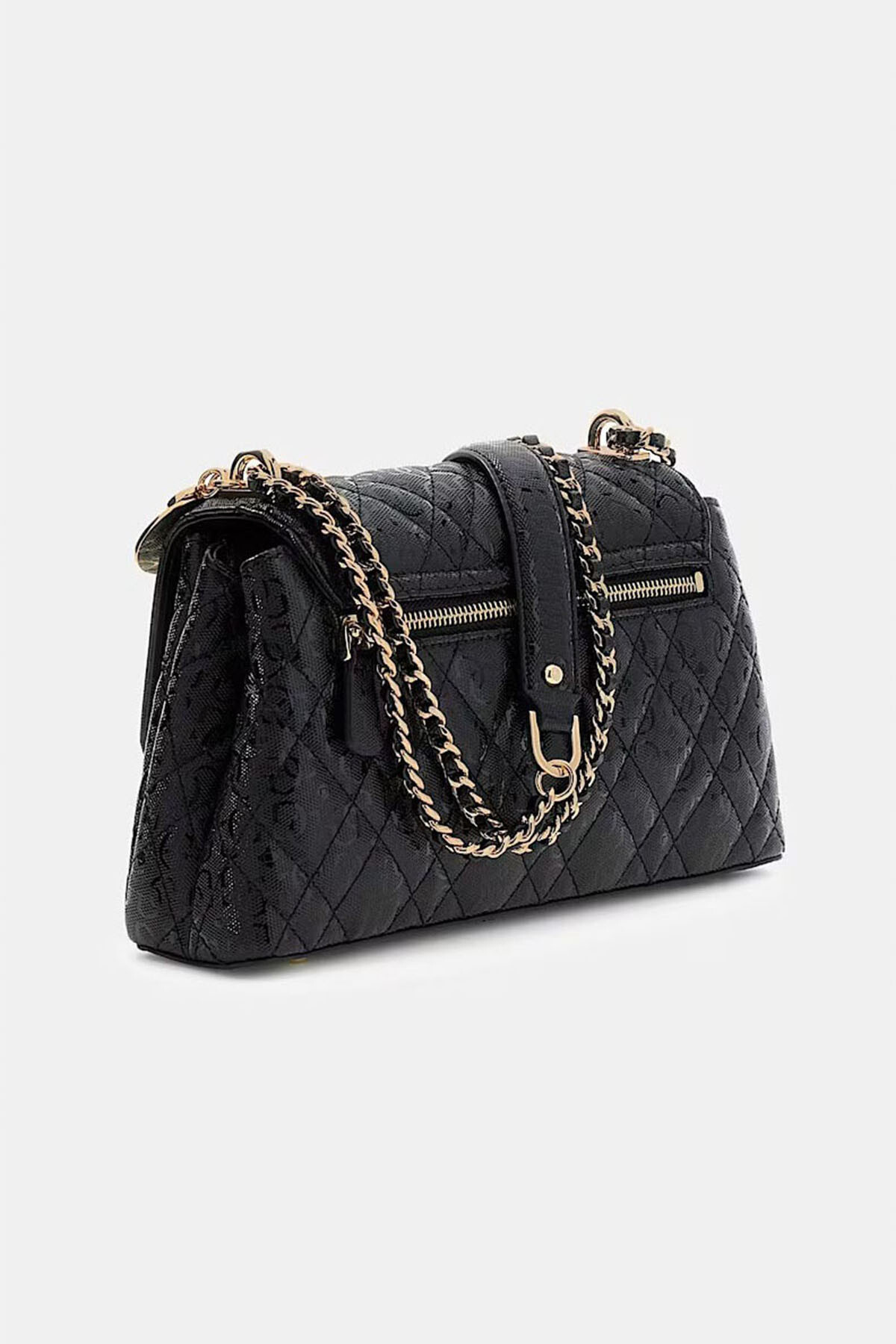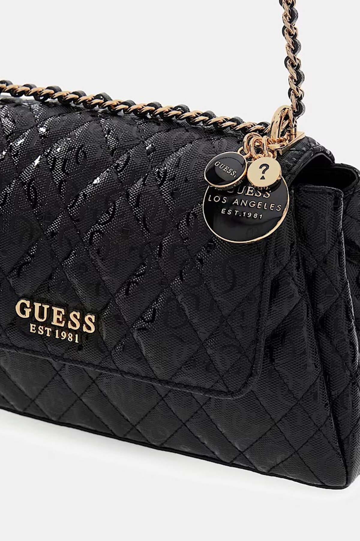 Siyahın zamansız şıklığını parlak görünümlü ve kapitone dikişli yüzeyiyle hareketlendiren Isemay el çantası, stilinize lüks bir dokunuş katıyor. Gövdeyi kaplayan 4G logo desenleri ve sap kısmındaki zincir detayları tasarıma ışıltı kazandırırken, kapaklı ve manyetik düğmeli kapanış sistemi pratik bir kullanım sunuyor. İç tasarımındaki çift bölmeli yapı, eşyalarınızı düzenli tutmanızı sağlarken, arka yüzdeki fermuarlı cep hızlı erişim ihtiyacınızı karşılıyor. Sap tabanında yer alan çıkarılabilir charm aksesuarı ise modern tasarımın tamamlayıcı bir parçası olarak öne çıkıyor.