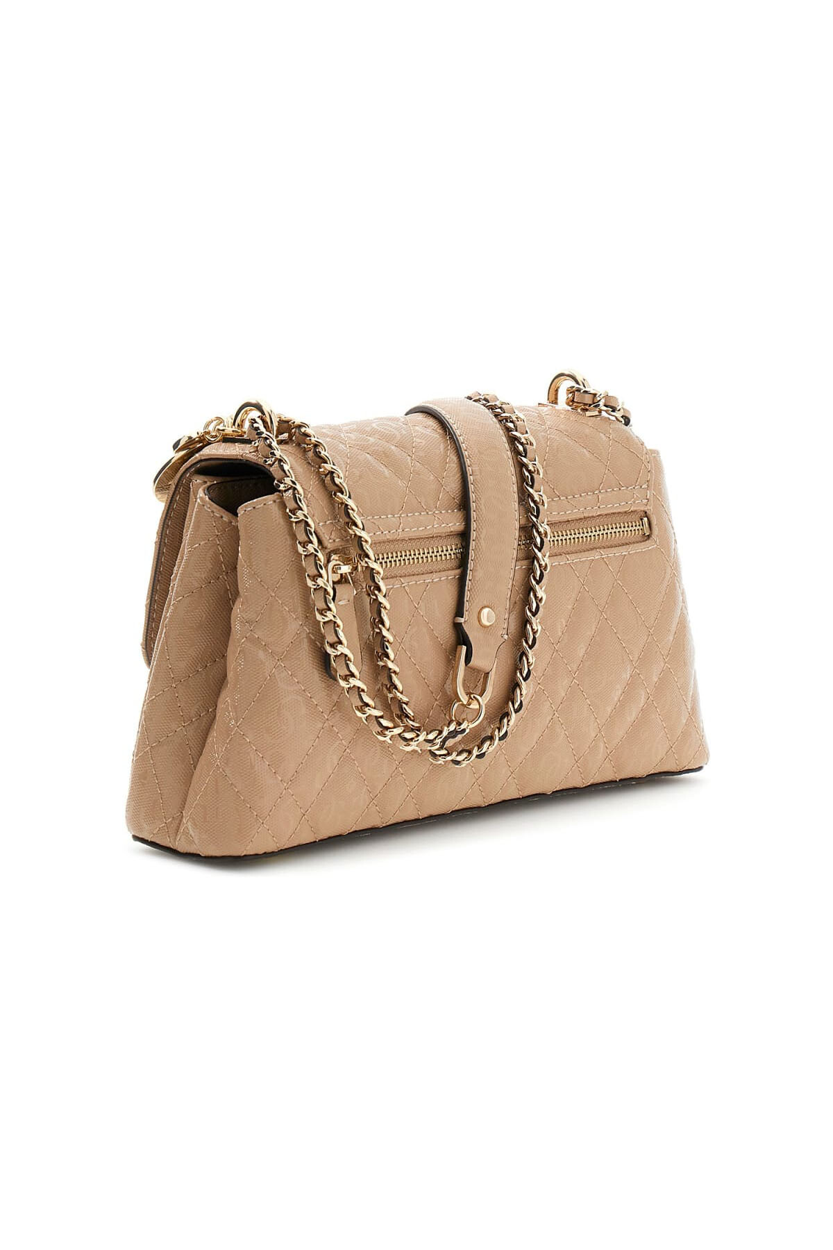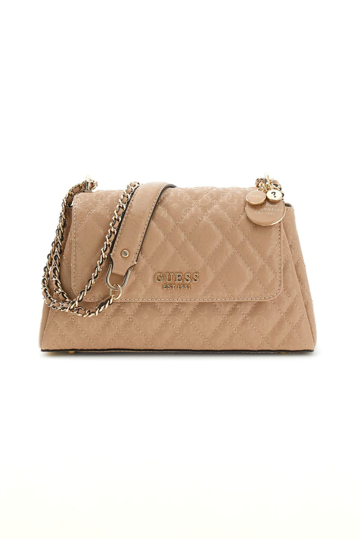 Bej renginin her mevsime uyum sağlayan zarif tonunu, ışığı yansıtan parlak yüzey dokusuyla buluşturan Isemay omuz çantası, klasik kapitone şıklığına modern bir yorum getiriyor. %100 poliüretan malzemeden üretilen gövde, yüzeyindeki ikonik logo kabartmalı desenler ve kapak kısmındaki altın rengi metal logo yazısı ile zenginleştirilerek tasarıma derinlik kazandırıyor. Çantanın sap kısmına eklenen dekoratif charm detayları modele hareket katarken; zincir ve deri kombinasyonlu omuz askısı konforlu ve şık bir taşıma deneyimi sunuyor. Mıknatıslı kapak altında yer alan çoklu iç bölmeler ve astar detayları eşyalarınızı düzenli tutarken, arka yüzeydeki fermuarlı cep pratik bir kullanım alanı sağlıyor.