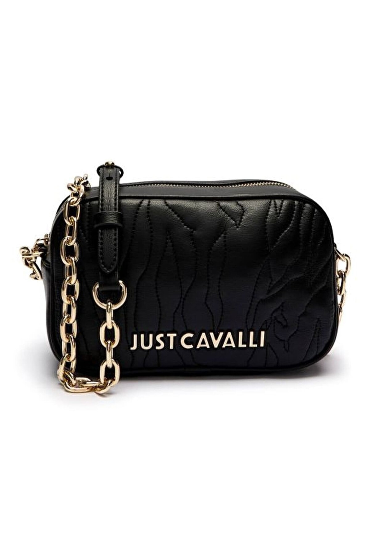 Kadın Jc Yazı Logo Desenli Çapraz Kamera Omuz Çantası - Siyah