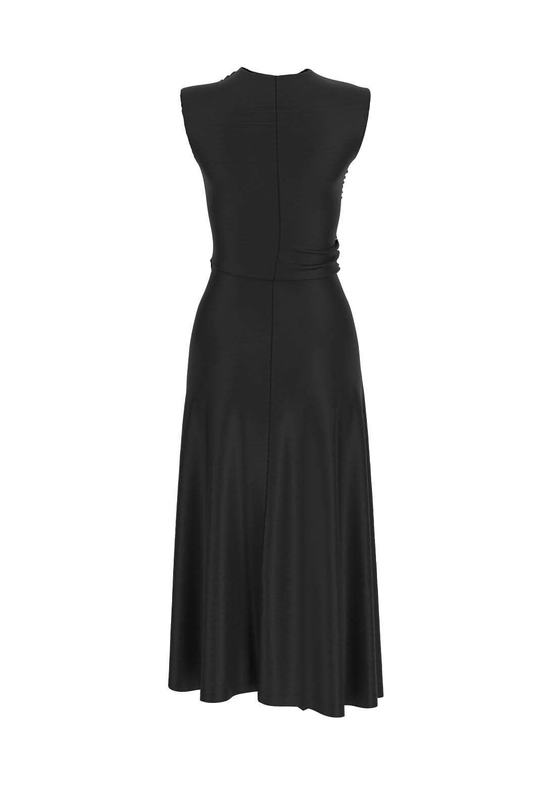 Tasarım: Sıfır yaka, kolsuz, drapeli ve dökümlü bel detayı