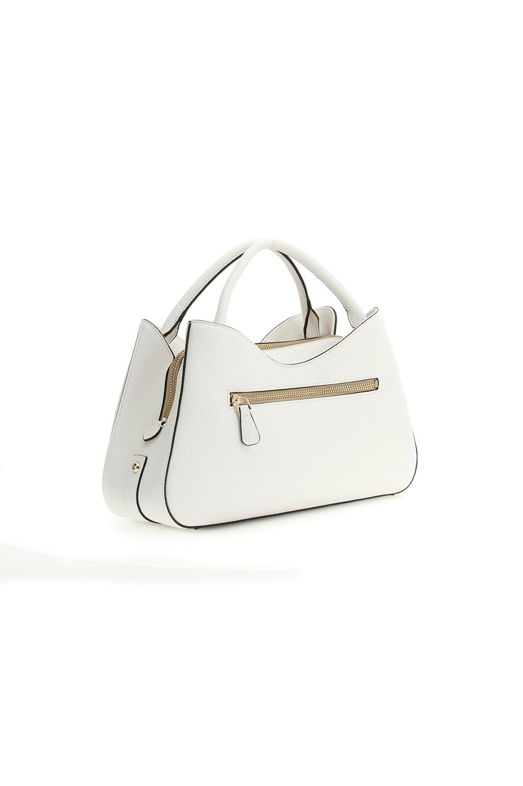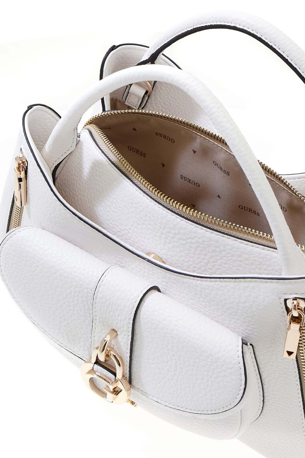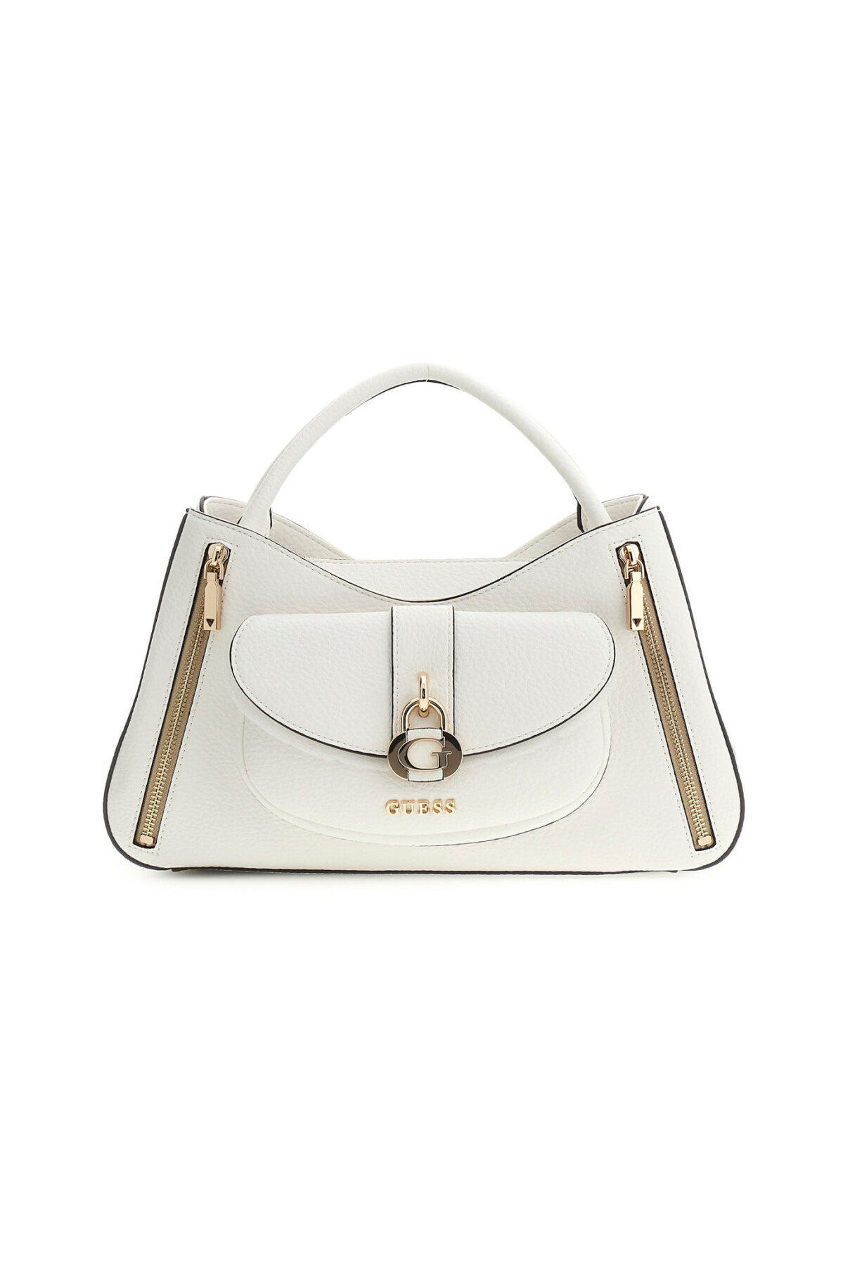 Guess aksesuar koleksiyonunun zarafet ve fonksiyonelliği bir araya getiren Jessa el çantası, saf beyaz rengi ve dokulu deri görünümüyle stilinize aydınlık bir dokunuş katıyor. Modern hatları altın renkli metal aksesuarlarla buluşturan bu model, hem günlük şehir hayatında hem de şık davetlerde premium bir duruş sergiler.