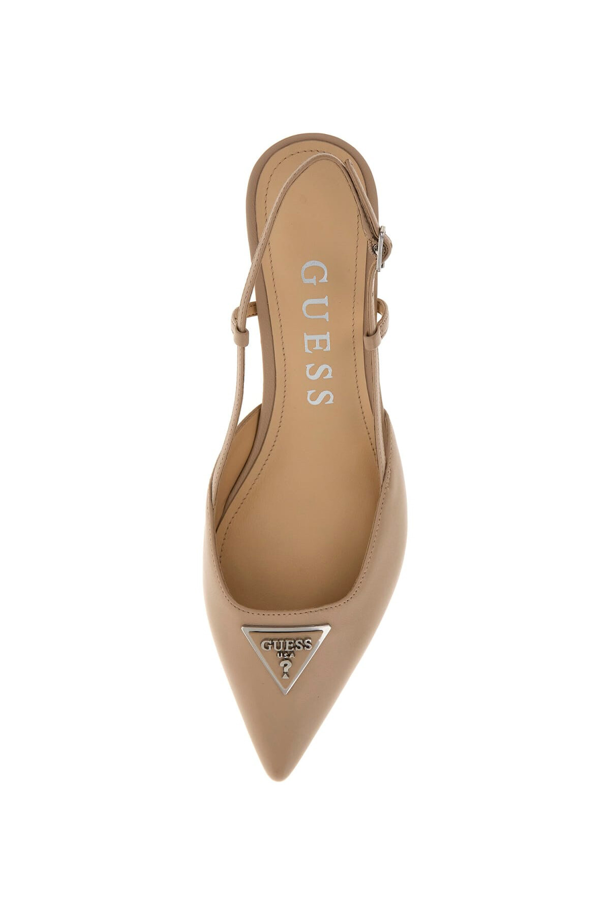 Detay: Ön kısımda gümüş renkli metal üçgen logo