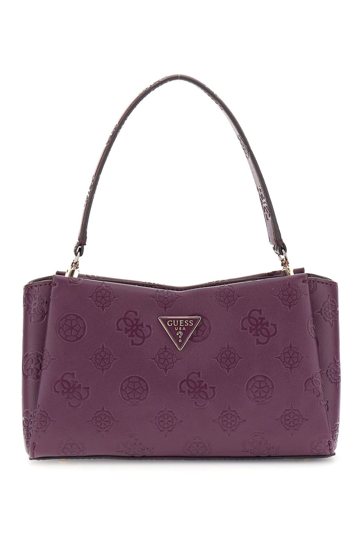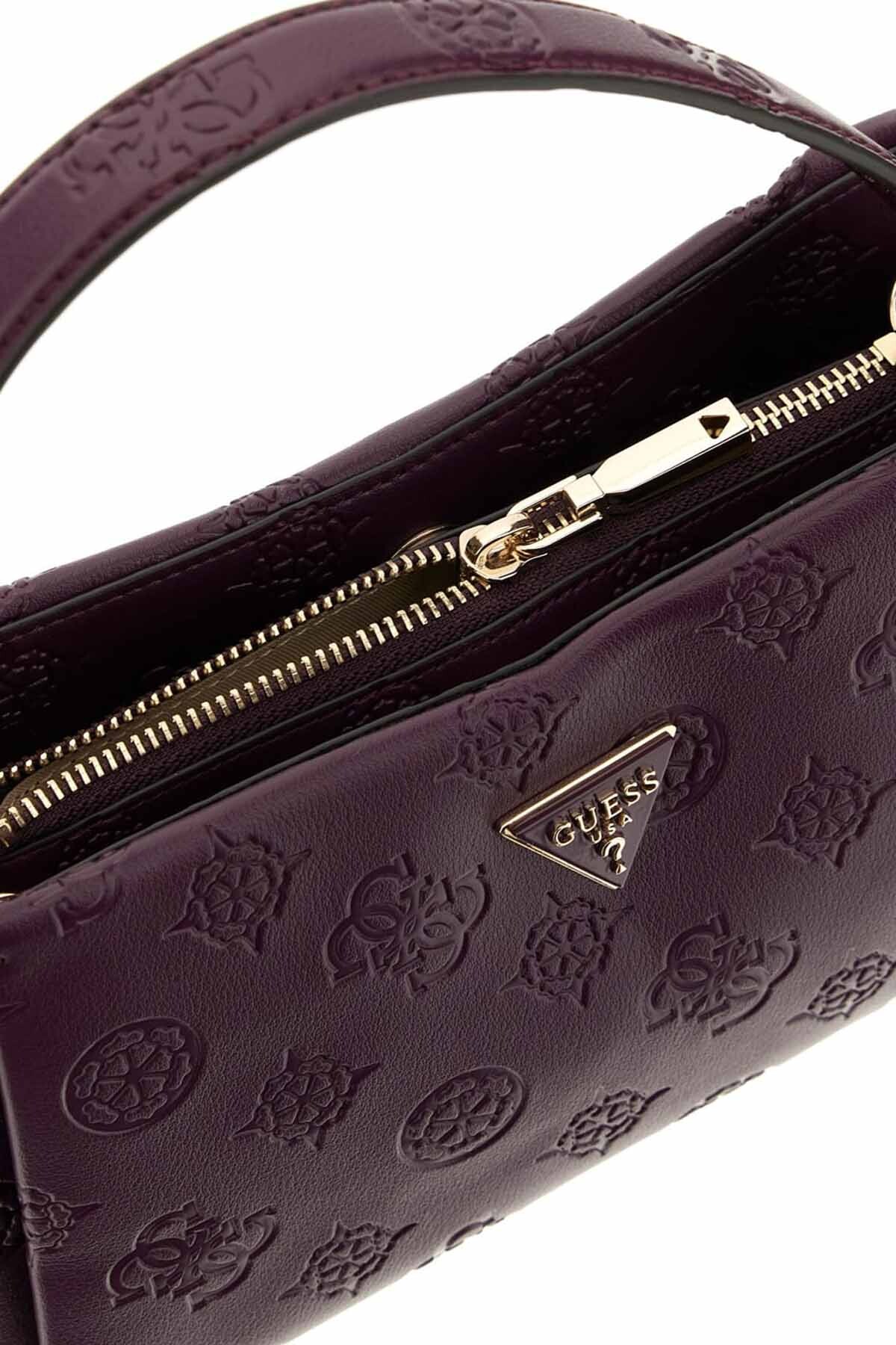 Zarif ve yapısal bir tasarıma sahip bu çanta, zengin mürdüm rengi ve tüm yüzeyini kaplayan sofistike kabartma monogram deseni ile öne çıkar. Klasik üstten taşıma sapı, şık bir el çantası görünümü sunar. Ön yüzeydeki üçgen formlu metal aksesuar, çantanın şık tasarımını tamamlarken, fermuarlı kapanışı eşyalarınız için güvenli bir saklama alanı sağlar.