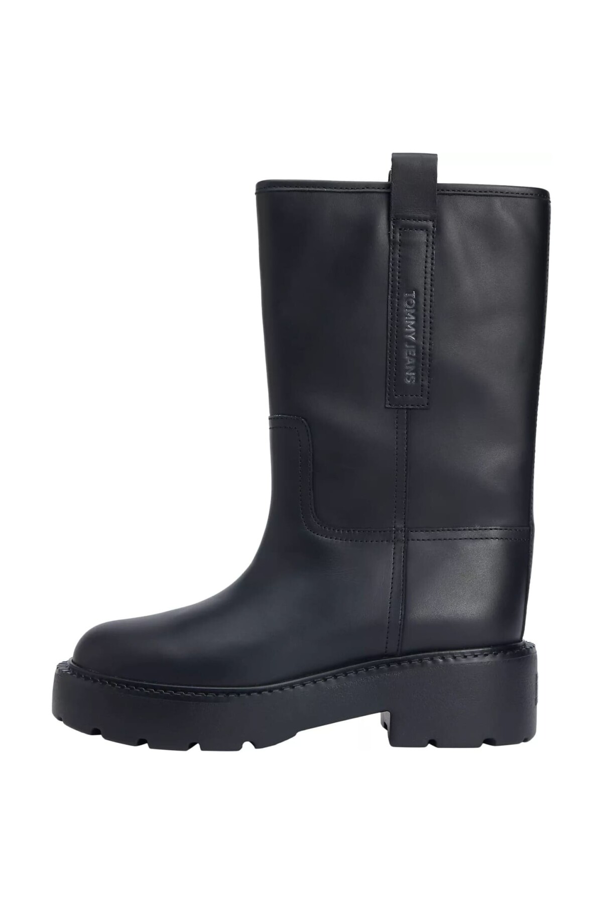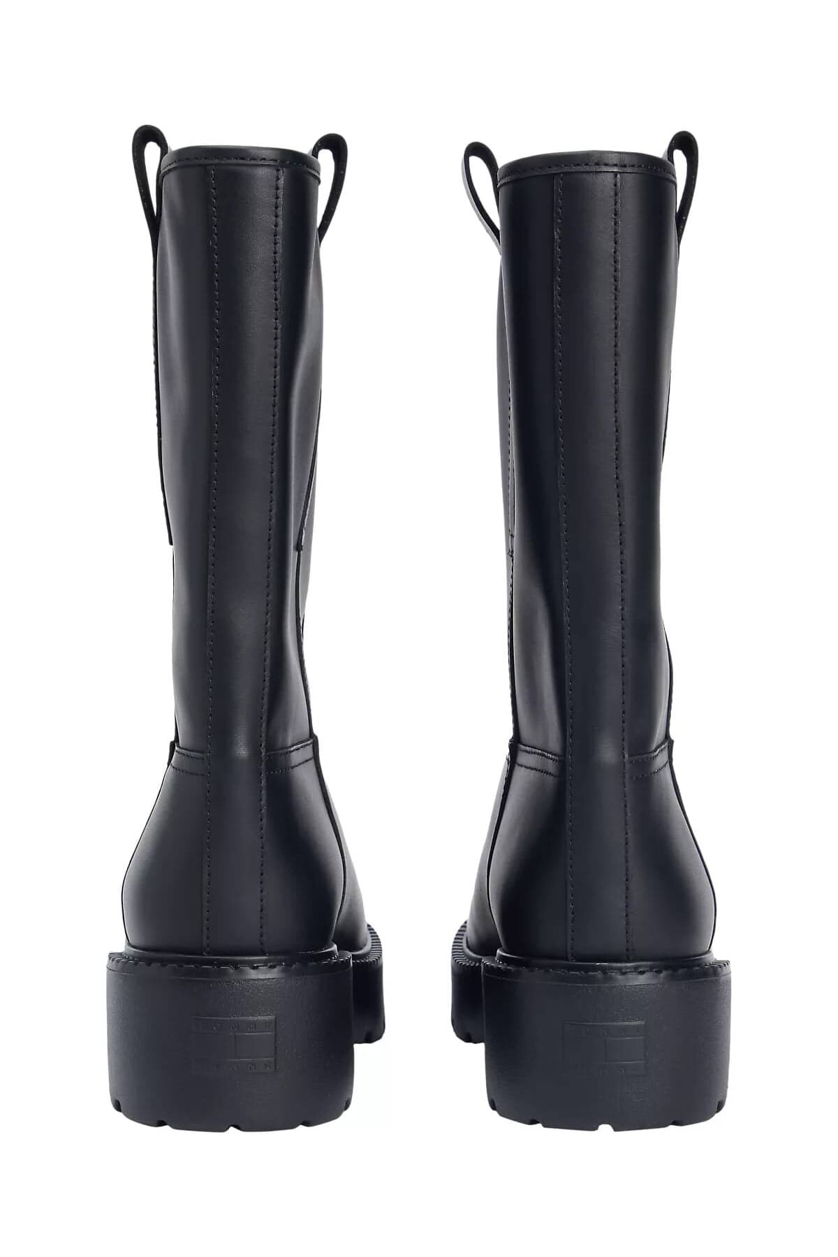 Cesur ve modern bir duruş sergileyen bu bot, şehirli stilinize güçlü bir karakter katacak. Yüksek kaliteli pürüzsüz malzemeden üretilen bot, düz ve boru şeklindeki konç yapısıyla minimalist bir şıklık sunar. Kalın ve tırtıklı tabanı güncel trendleri yakalarken, güçlü bir zemin tutuşu ile güvenli adımlar sağlar. Geniş yan çekme halkası, botu kolayca giymenize yardımcı olur. Siyah rengin çok yönlülüğü ile midi eteklerden skinny jean'lere kadar birçok farklı parçayla uyum sağlar.